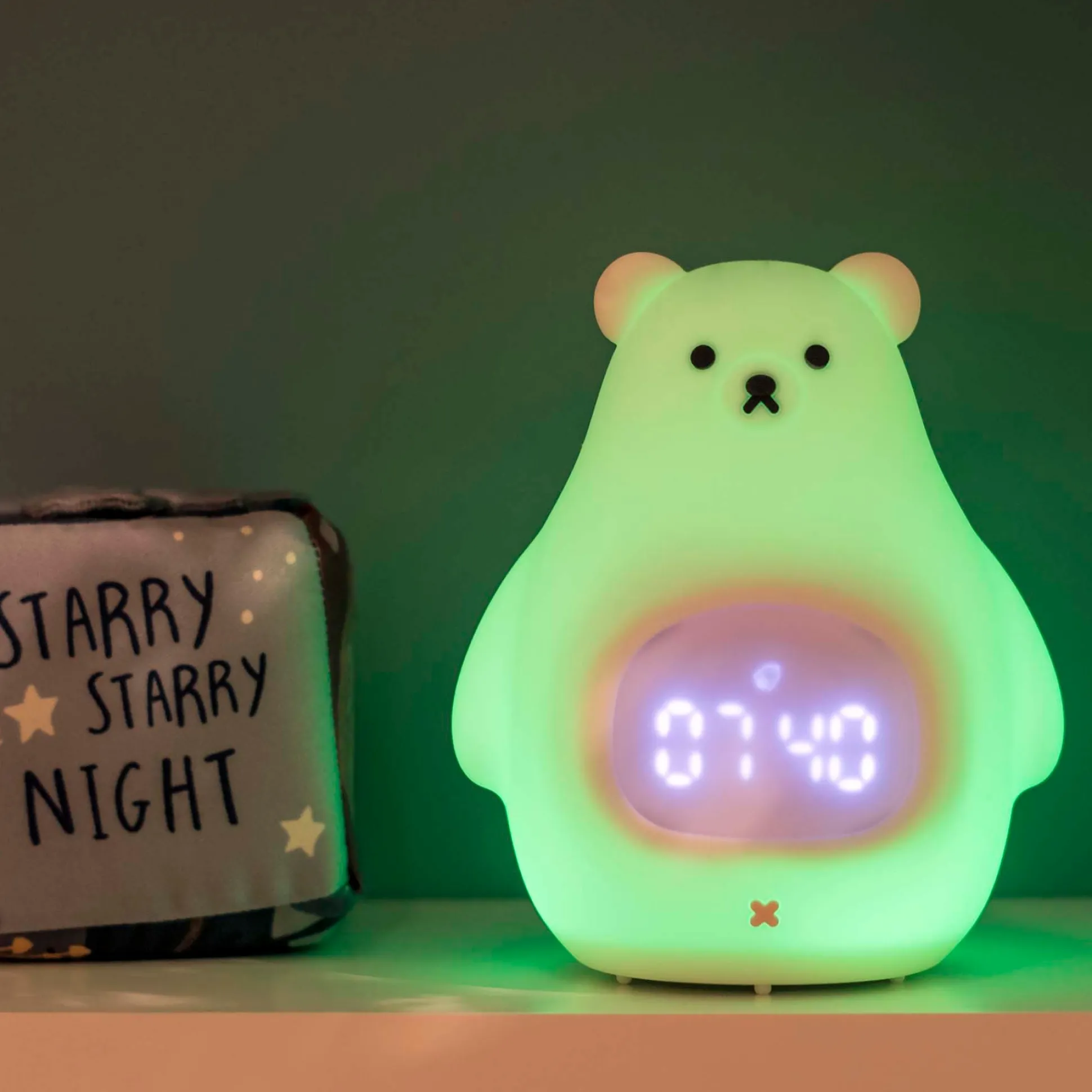 Deze Luvion slaaptrainer in de vorm van een beer is ideaal om je kleintje te leren wanneer het nog geen tijd is om op te staan. Stel de wekker in op de tijd waarop de kleine zijn bed uit mag en de slaaptrainer zal op dit tijdstip groen worden. In het half uur voordat het lampje groen wordt zal het lampje vast inschakelen om duidelijk te maken dat de kleine nog even moet blijven liggen. Of spreek af dat deze 30 minuten gebruikt mogen worden om vast in de eigen kamer te spelen of nog even rustig in bed een boekje te lezen. Doordat er alleen een lichtje gaat branden wanneer het tijd is om op te staan zal je kindje hierdoor niet worden wakker gemaakt. Daarnaast bevat de beer een nachtlampje, leuk en handig om ‘s avonds met het naar bed gaan te gebruiken als nachtlampje.