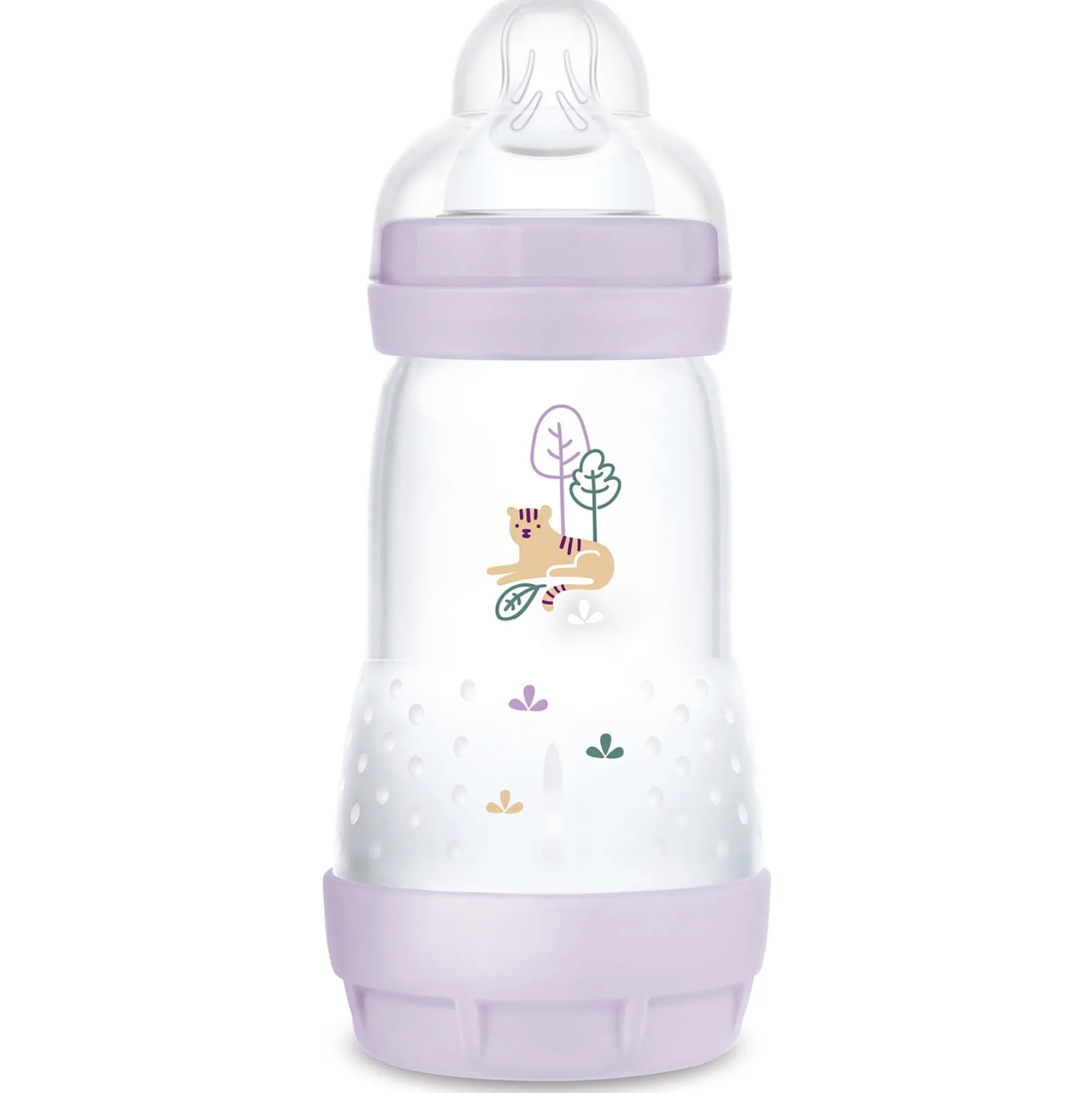 De speciale ventilatie-bodem van deze MAM fles zorgt voor een soepele drinkstroom en voorkomt dat de baby lucht inademt. Dit vermindert kans op krampjes, boertjes en reflux. Zelfsteriliserende functie – In vier stappen snel en veilig in de magnetron gesteriliseerd. Zachte speen – De zuigfles heeft een speen in maat 1 (0+ maanden/vanaf geboorte) gemaakt van speciale SkinSoft-silicone waardoor het vertrouwd aanvoelt in de mond. Hygiënisch & veilig – Eenvoudig te vullen en reinigen dankzij de brede opening. Babyvoeding wordt veilig en lek-vrij vervoerd door de afsluitkap. Inhoud verpakking – MAM Easy Start Anti-Colic babyflesje (260 ml), inc. MAM-flesspeen maat 1 (0+ maanden), Anti-Colic bodemventiel.