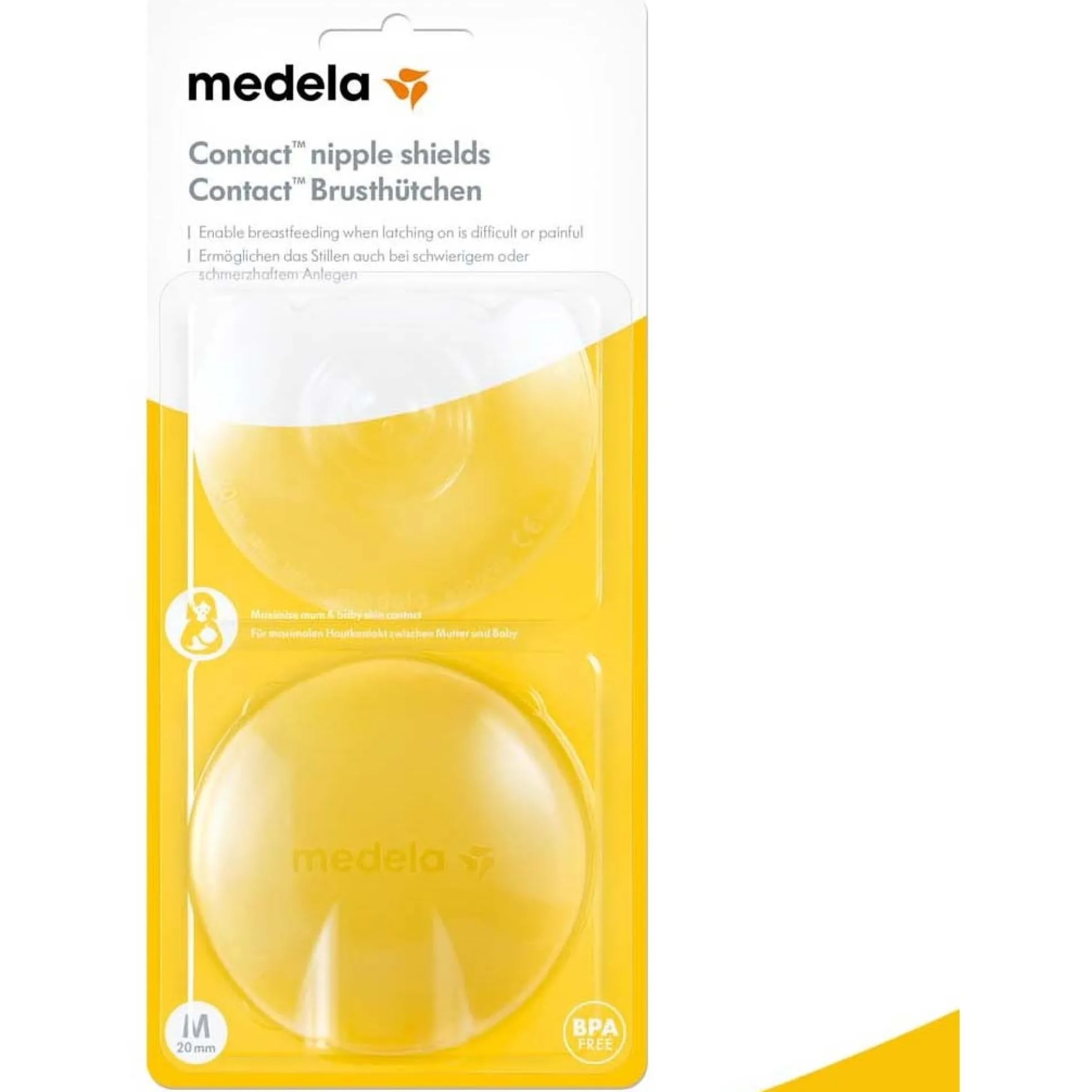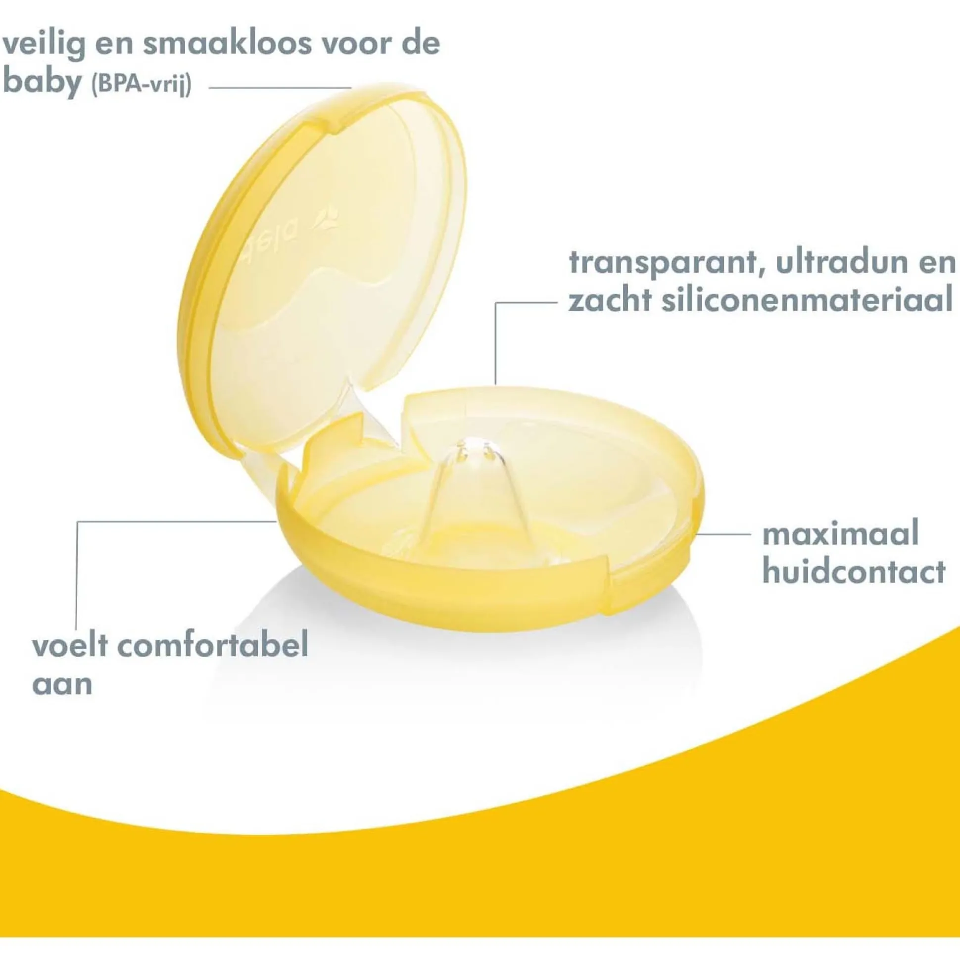 Heb je problemen met de borstvoeding door vlakke, ingetrokken, pijnlijke tepels of tepelkloven? De tepelhoedjes van Medela kunnen bij deze uitdagingen een oplossing bieden. Ze zorgen ervoor dat je jouw baby toch borstvoeding kunt geven. De tepelhoedjes beschermen je tepels tijdens het voeden en helpen ook om jouw baby aan te leggen. De speciale vorm verzekert een maximaal huidcontact. Gebruik onder deskundige begeleiding. Van zeer dun, zacht siliconenrubber. Geur- en smaakloos. De Contact tepelhoedjes zijn verkrijgbaar in drie maten en worden verpakt in een handig doosje.