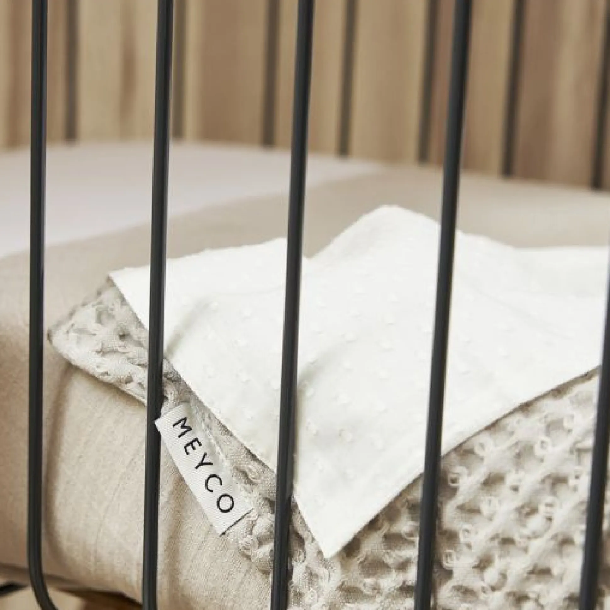 Laat jouw kleintje heerlijk wegdromen onder deze Meyco Baby deken Waffle Cotton. De luxe katoenen wafelstructuur aan de voorkant van de deken en de zachte katoenen achterkant zorgen voor ultiem comfort. Combineer dit dekentje met een bijpassend Meyco Baby laken en hoeslaken om het bedje veilig en knus op te maken. Deze deken is gemaakt van 100% katoen. De TOG-waarde van het deken is 1.0. Afmeting 100×150 cm. Wasbaar in de wasmachine op maximaal 40 graden