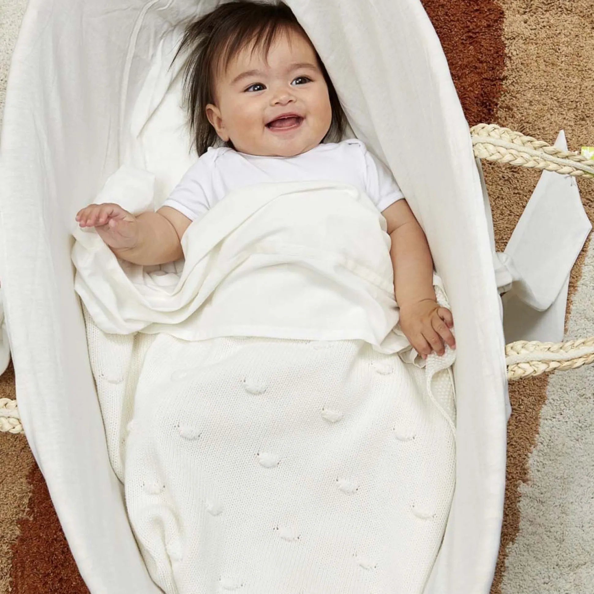 De Meyco Knots babydeken is een gebreide babydeken en heerlijk zacht en comfortabel. De gebreide deken is van 100% katoen. De 3D noppen zijn subtiel en geven een eigentijdse, maar ook luxe uitstraling.Kenmerken:100% katoenWasbaar in de wasmachineBeschikbaar in diverse kleurenVerkrijgbaar als wiegdeken 75×100 cm, ledikantdeken 100×150 cm,