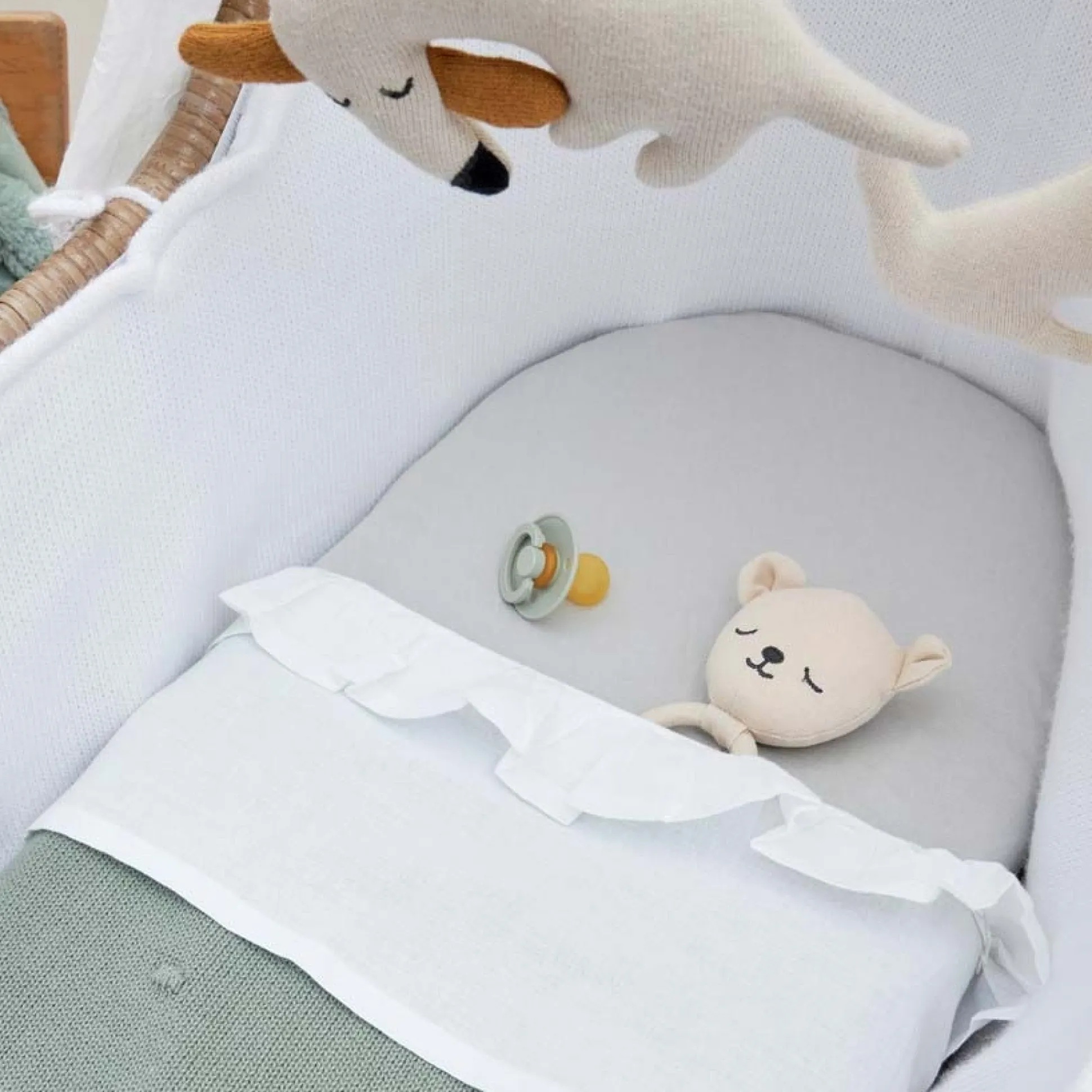 Dit Meyco wieglaken voelt dankzij de 100% katoenen kwaliteit heerlijk zacht aan en zorgt voor een comfortabele nachtrust voor jouw kleintje. Het lakentje heeft ruches aan de bovenrand wat zorgt voor een mooi elegant design. Makkelijk te combineren met verschillende wiegdekentjes! Afmeting: 75 x 100cm. Wassen op maximaal 40 graden.