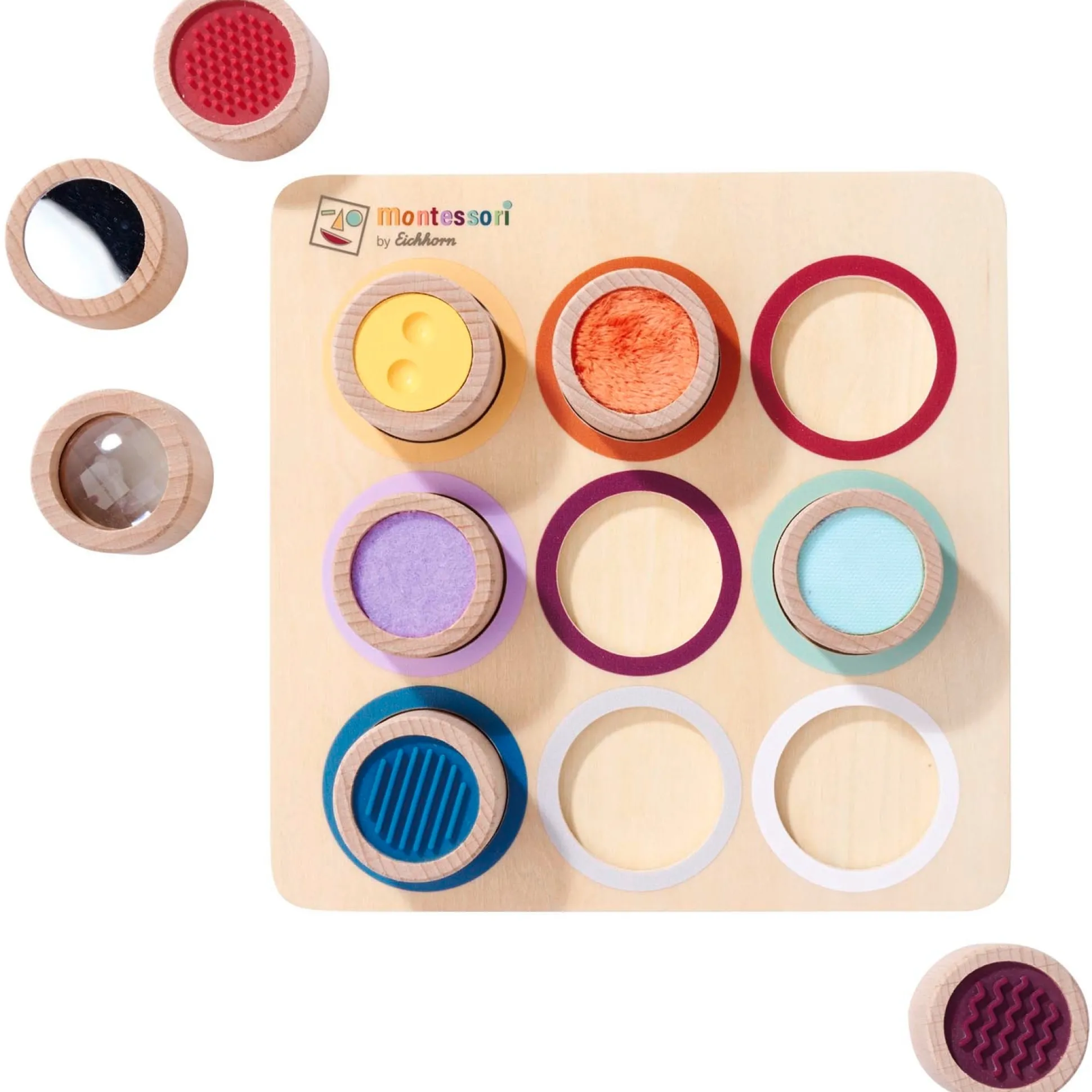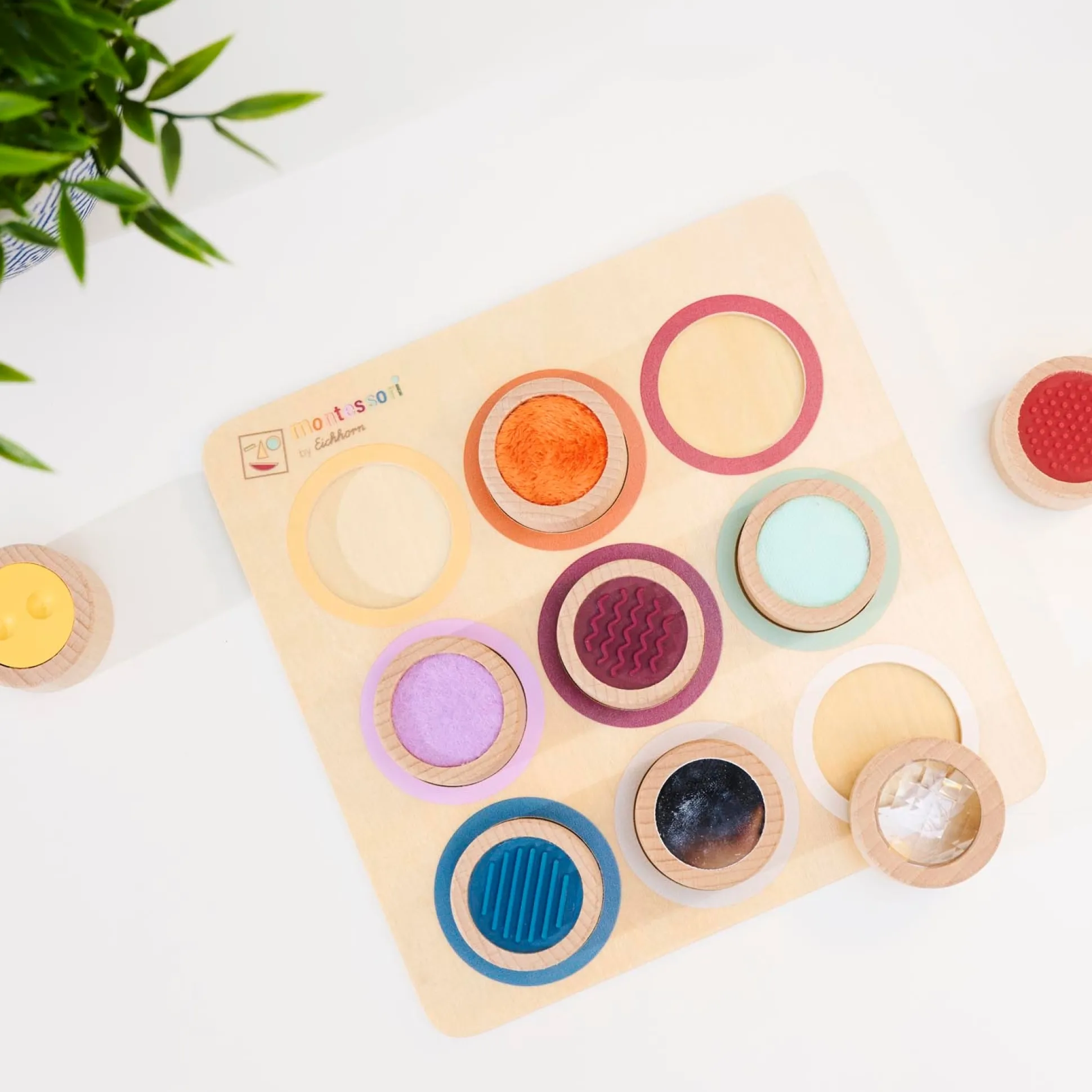 Tastzin is een belangrijke zintuiglijke ontwikkeling voor uw kind. Spelen met verschillende oppervlakken en materialen bevordert de tastzin. Ons Montessori Touch Board heeft negen voelbare cilinders waarmee uw kind oppervlakken en texturen kan ontdekken. Het Montessori Touch Board is gemaakt van 100% FSC-gecertificeerd beukenhout en multiplex en is geschikt voor kinderen vanaf 3 jaar.