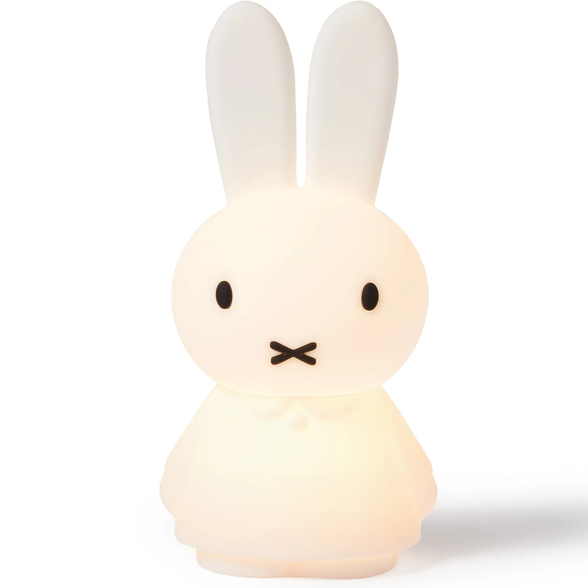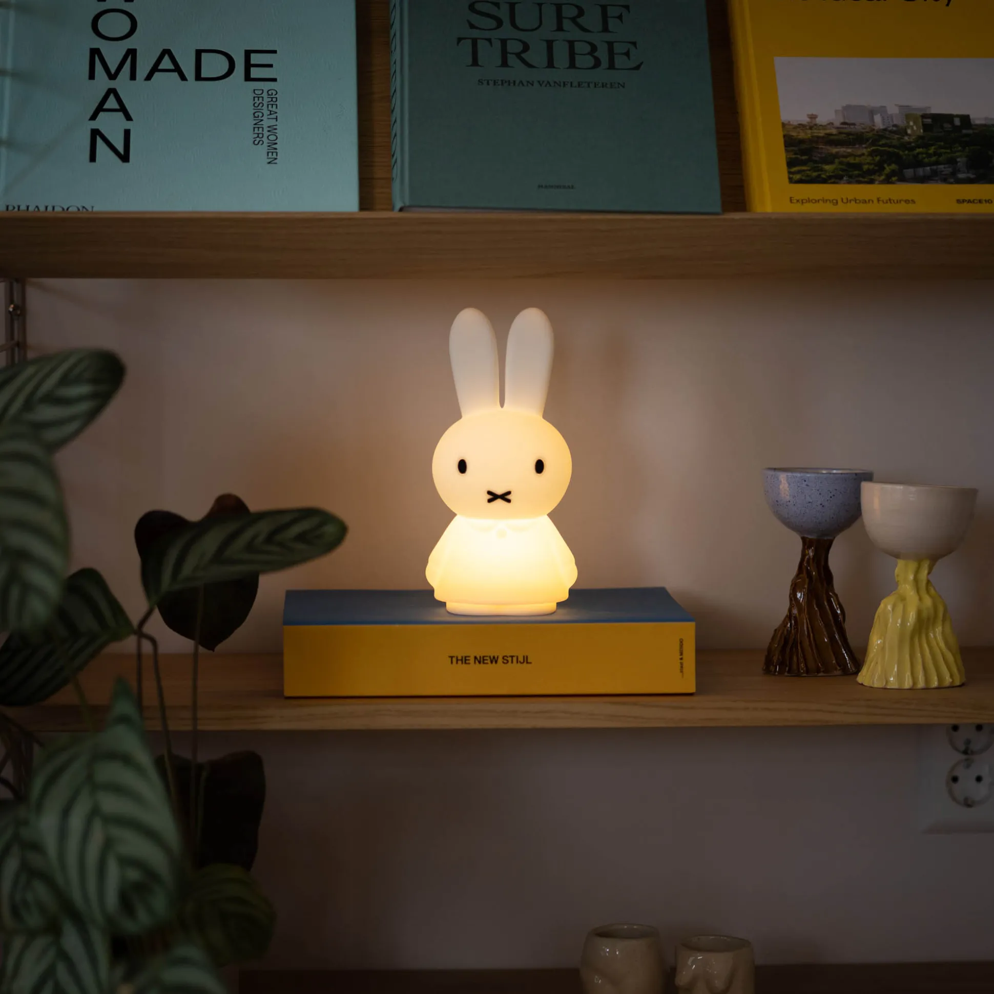 Nijntje, een icoon die niet meer weg te denken is in iedere kinderkamer. Nu ook in een nieuwe afmeting: 22cm! Deze Nijntje lamp is in 4 standen te dimmen en kan dus worden gebruikt voor verschillende momenten. Bijvoorbeeld bij het voorlezen van een boekje, voor een nachtvoeding of als waaklichtje tijdens de nacht. De Nijntje lamp is draadloos en kan dus gerust mee uit logeren. Het is gemaakt van een zachte siliconen welke BPA vrij is, wordt geleverd met een USB-oplaadkabel en gaat automatisch uit na 60 minuten.