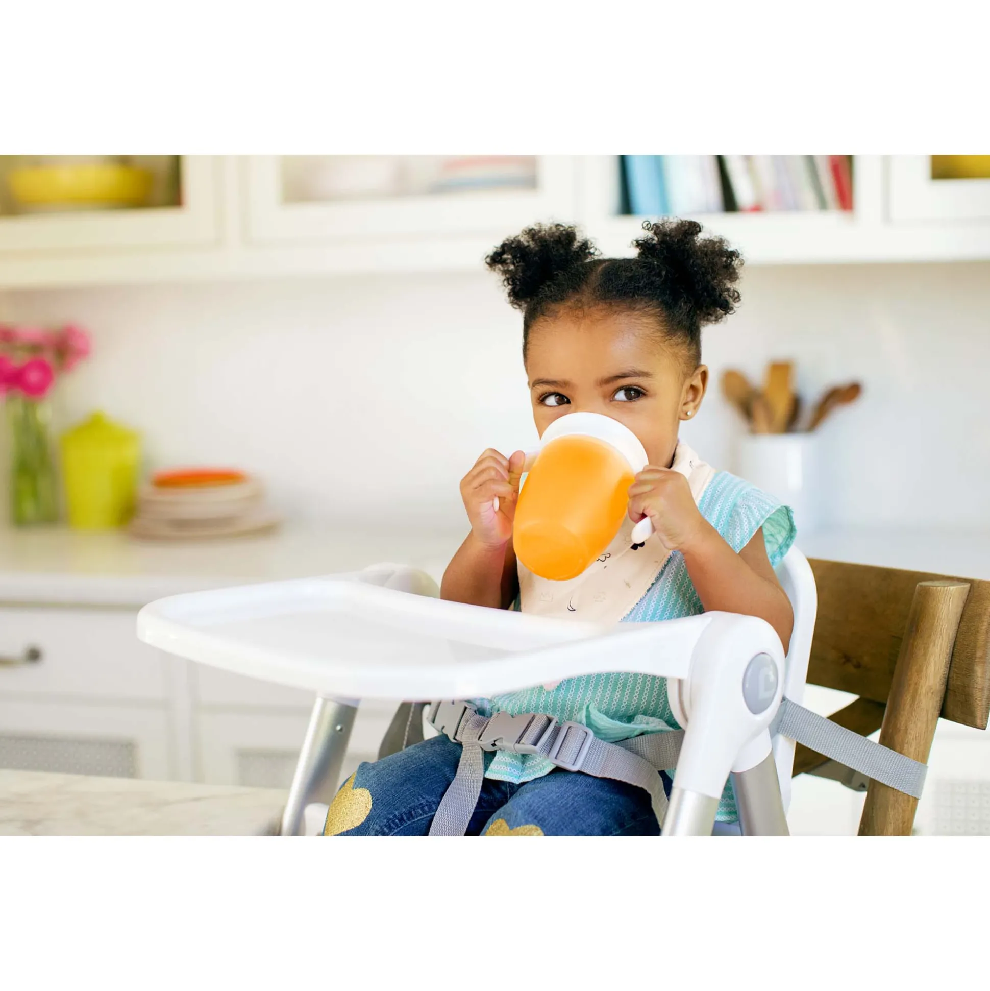 Dankzij het 360 graden ontwerp van deze Munchkin drinkbeker kan je kindje vanuit alle kanten uit de beker drinken. De beker voorkomt geknoei en is tegelijkertijd beter voor de tanden. De tuitvrije technologie helpt bij de overgang naar een open beker. Technologie 100% waterdicht, 100% lekkagebestendig. BPA-vrij. Geschikt voor kinderen vanaf 6 maanden.
