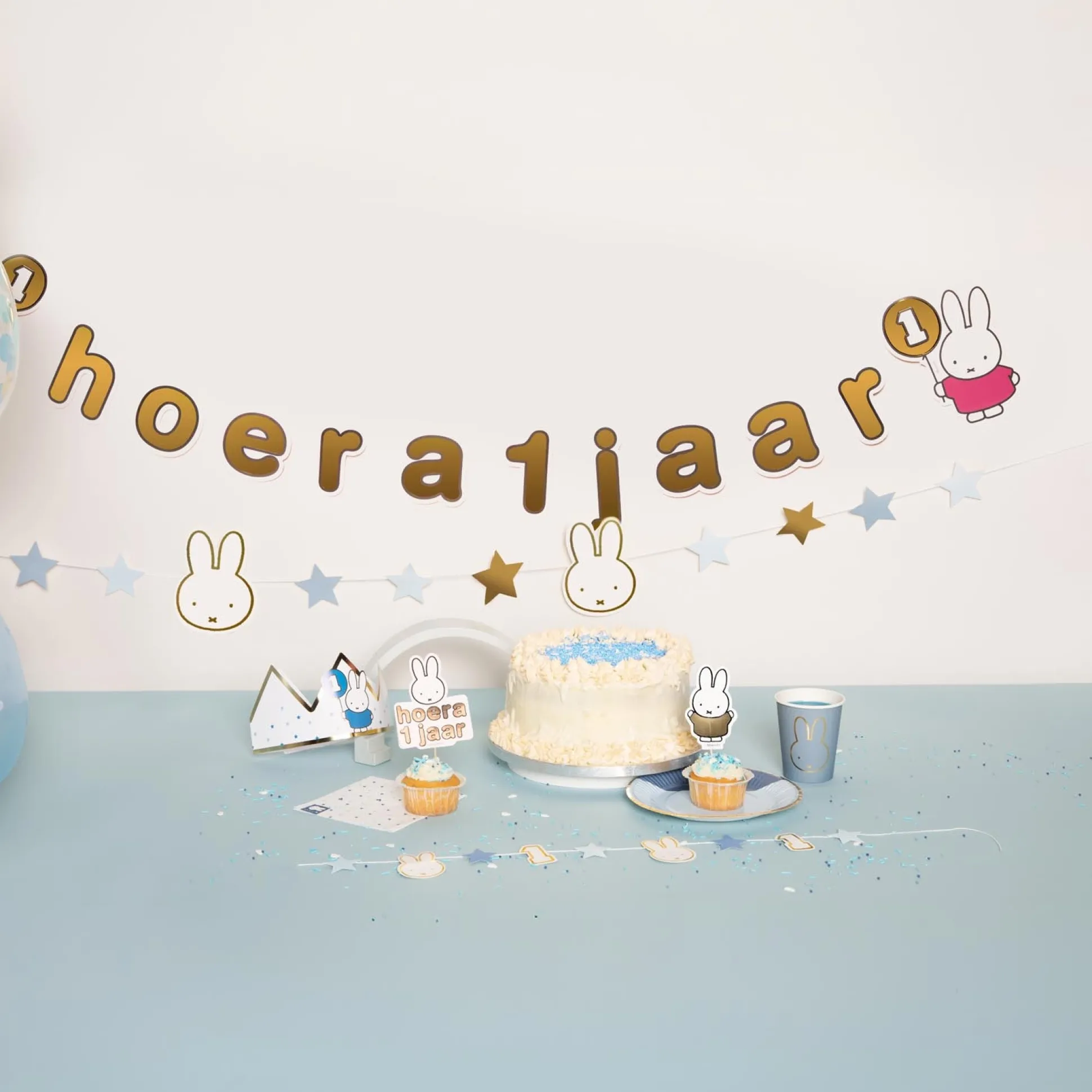 De eerste verjaardag van je kindje is een hele mooie mijlpaal. Met deze hoera 1 jaar slinger van Nijntje kun je dit bijlangrijke moment goed vieren. Gefeliciteerd, maak er een mooie dag van! Afmeting: 2m.