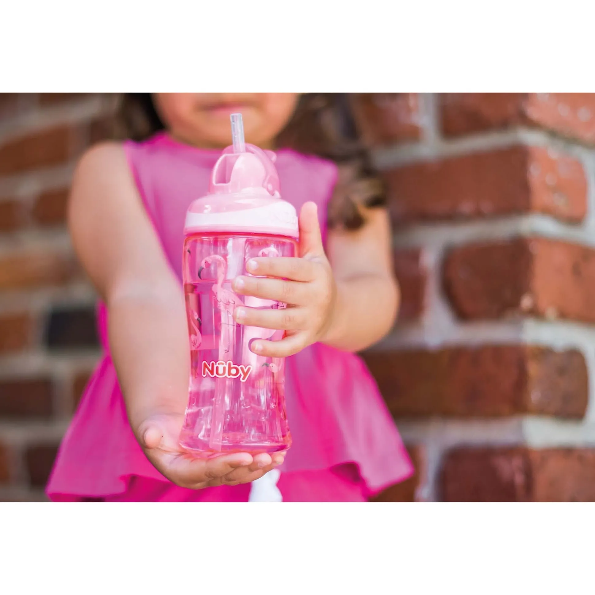 Deze leuke Flip-It-beker van Nuby is perfect voor jouw kleine avonturier! De rietjesbeker is gemaakt van sterk Tritan van Eastman. De ingebouwde hygiënische flip dop houdt het rietje schoon wanneer de beker niet in gebruik is. Het heeft een ingebouwd ventiel dat makkelijk is te reinigen en te monteren. Deze beker is geschikt voor kinderen vanaf ongeveer 18 maanden en bevat 360 ml.