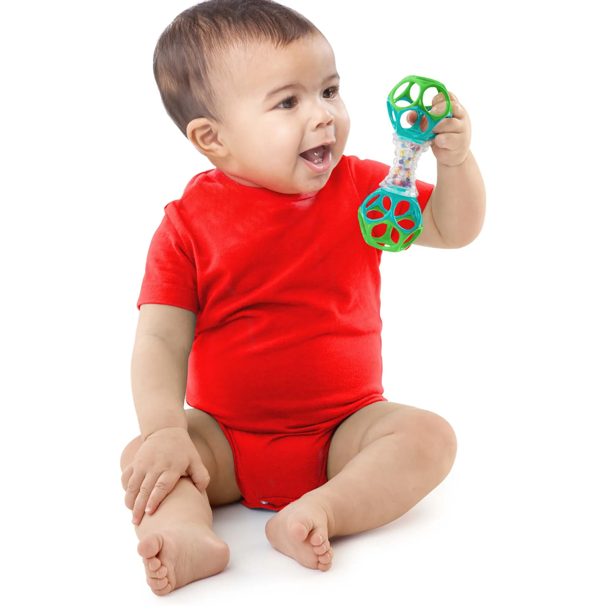 Deze rammelaar van het merk Oball is gemaakt voor de allerkleinste vingertjes en perfect voor de handjes van je kindje om vast te grijpen. Het handvat met textuur toont felgekleurde kralen die je kindje graag zal laten ratelen. Aan elk uiteinde is de rammelaar gemaakt van buigzaam stevig materiaal, zodat je kindje erin kan knijpen en spelen op alle mogelijke manieren. Dit schudspeelgoed is gemakkelijk voor je kindje om op te pakken om er uren mee te spelen. Geschikt vanaf de geboorte.