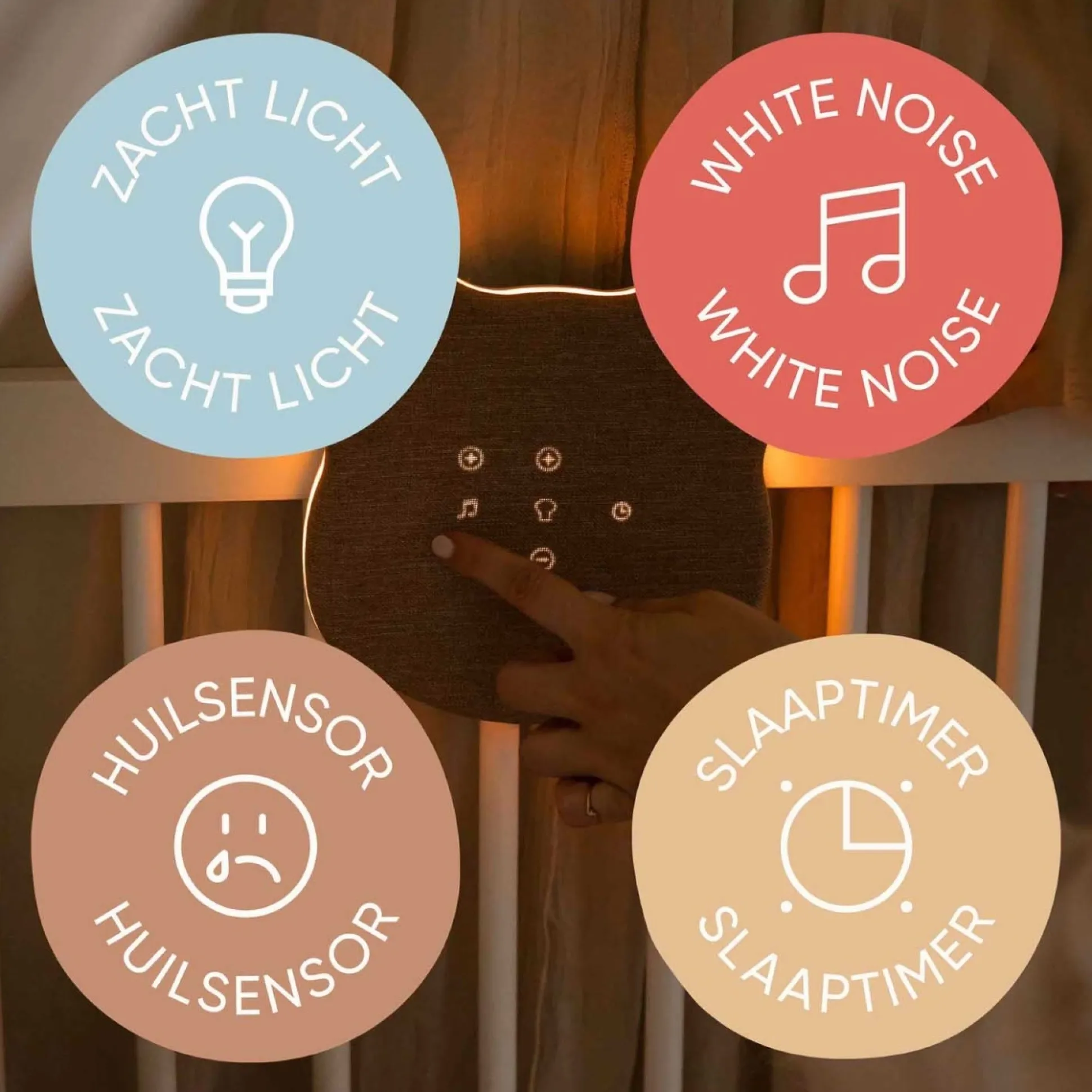 Laat de rustgevende sfeer van Leila’s Beer je kleintje zachtjes naar dromenland voeren. Dit lieve nachtlampje, dat je eenvoudig aan de muur, het ledikantje of de box kunt bevestigen, verspreidt niet alleen een zacht en warm licht in één van de vijf te kiezen kleuren, maar biedt ook de troostende witte ruis geluiden van de natuur, zoals een zacht ruisende zee of de liefdevolle hartslag van een moeder om een diepe en rustgevende slaap te bevorderen. En is je kleintje even onrustig? Dan springt de slimme huilsensor bij met de bekende, kalmerende geluiden. Met haar minimalistische design is Leila’s Beer een stijlvolle toevoeging aan elke babykamer, die tegelijkertijd een oase van rust creëert