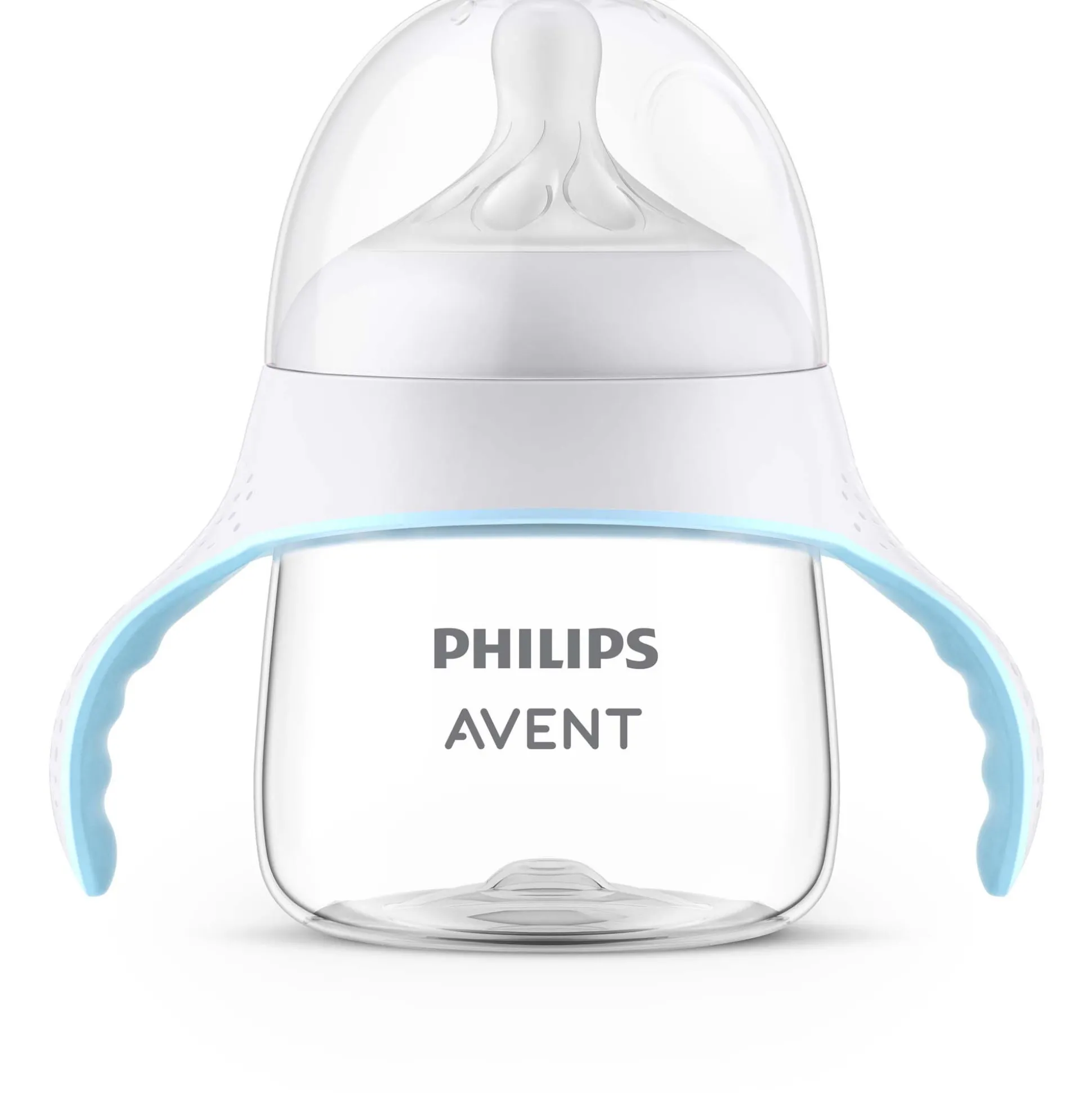 Avent Natural overgangsbeker 6M+Onze nieuwe Natural-oefenbeker maakt de overstap van een fles naar een beker gemakkelijker. Met de zachte grepen kan je baby de fles zelf vasthouden en ondertussen uit de bekende speen drinken.Maak de overstap naar een drinkbeker gemakkelijker voor je baby