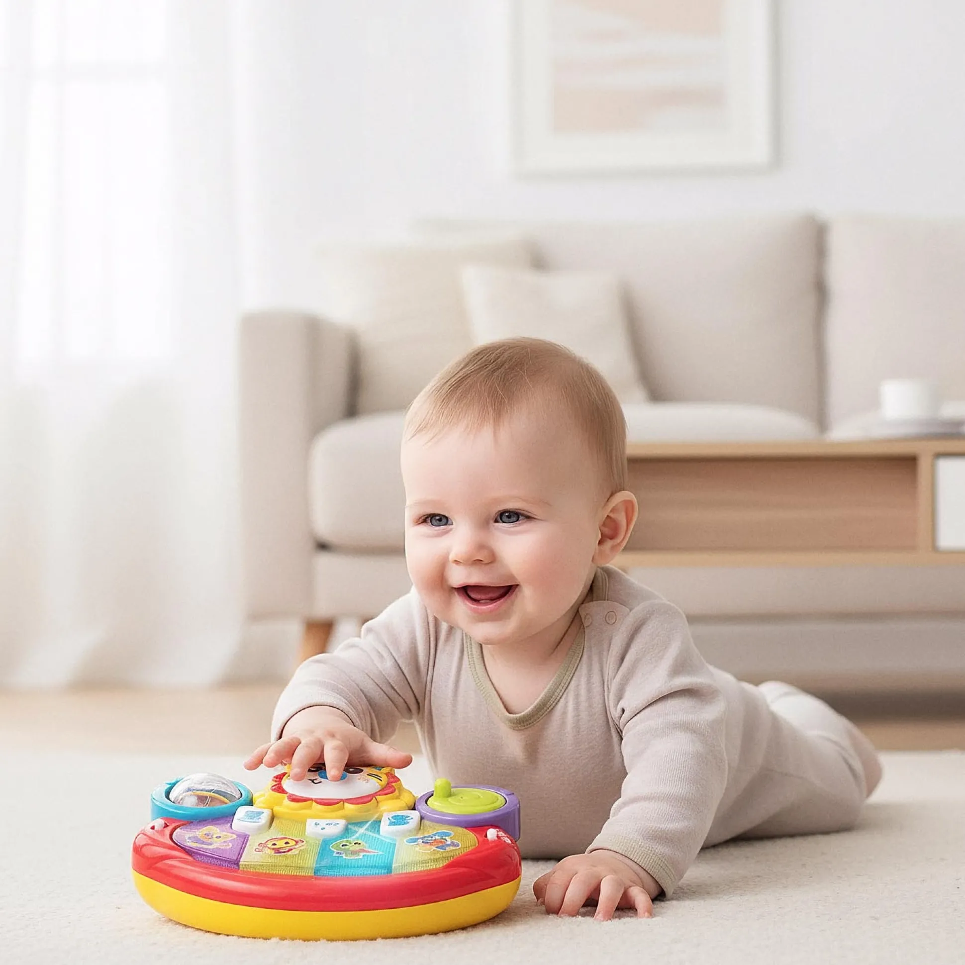 Beweeg en speel mee! Het Lion Activity Kick Speelgoed is een muzikaal speeltje vol leerzame activiteiten. Druk op de grote knoppen om muziek af te spelen en zie de lampjes knipperen op het ritme! Laat je kindje draaien met het tolonderdeel en ontdek de rollende balletjes voor extra speelplezier.