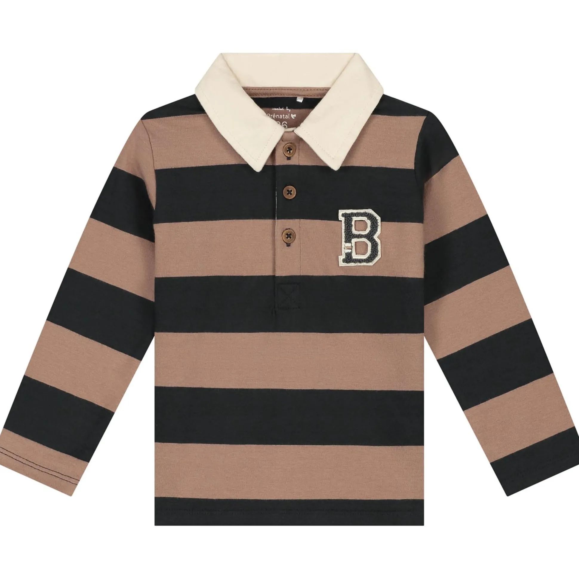 Dit Prénatal shirt is gemaakt van een fijne katoenen kwaliteit. Het shirt heeft lange mouwen en een polo kraag. Het shirt heeft een streep dessin en is goed te combineren met de rest van de Prénatal collectie. De polo heeft een knoopsluiting, hierdoor is het gemakkelijk aan en uit te trekken bij je kindje. Verkrijgbaar in de maten 56 t/m 122. Kwaliteit: 100% biologisch katoen. Binnenstebuiten wassen op 40 graden met gelijke kleuren. Dit product is getest op schadelijke chemicaliën en gecertificeerd volgens standaard 100 door OEKO-TEX® 23.HIN.84890 HOHENSTEIN HTTI.