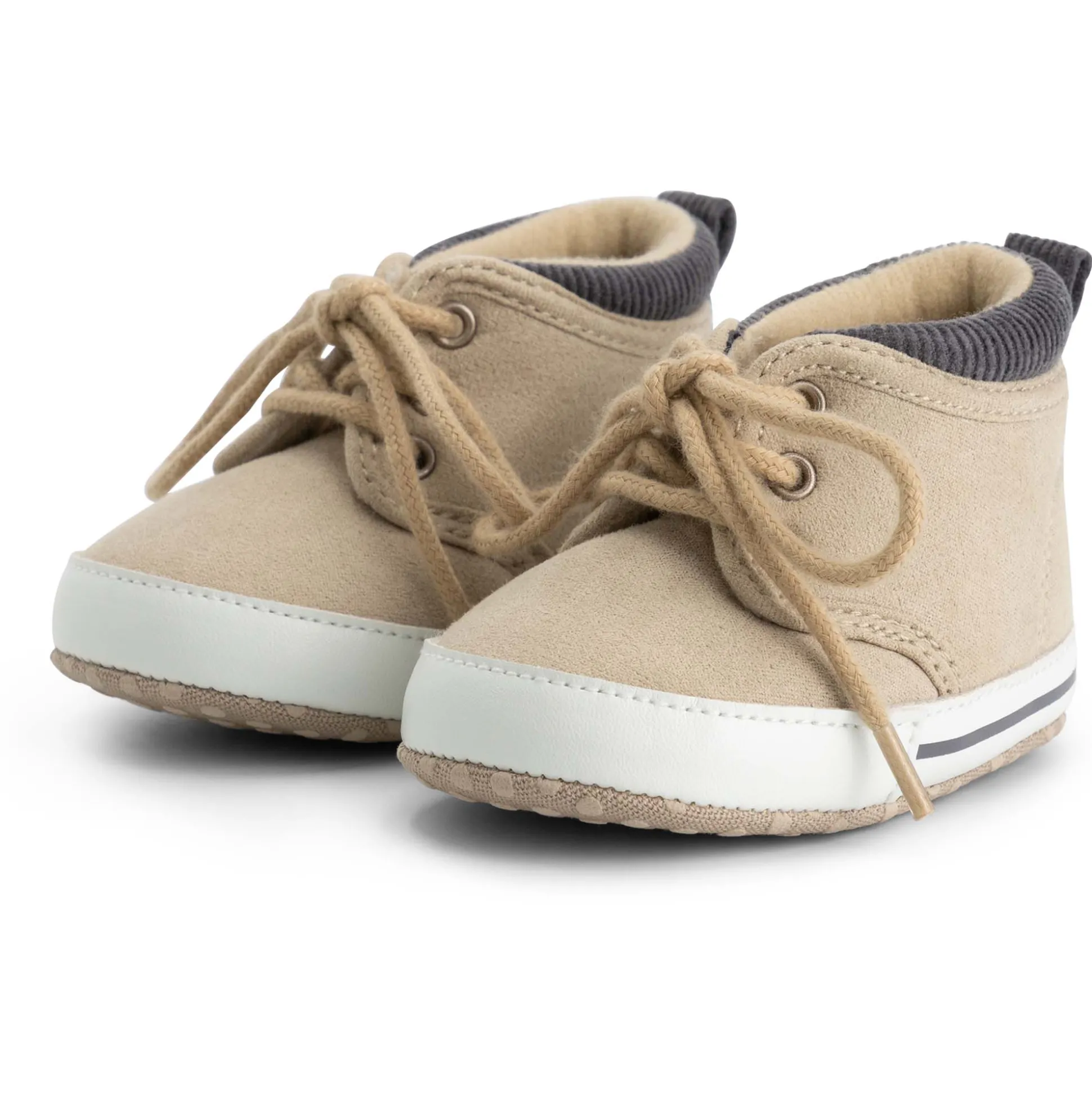 Deze Prénatal baby schoen heeft een mooie beige kleur met een rijs ribboodje. De schoen is voorzien van een veter zodat het gemakkelijk aan en uit te trekken is bij je kleintje. Het schoentje is goed te combineren met de rest van de Prénatal collectie. Verkrijgbaar in de maten 16 t/m 20. Kwaliteit buiten- en binnenstof: 100% polyester. Kwaliteit zool: 100% katoen.