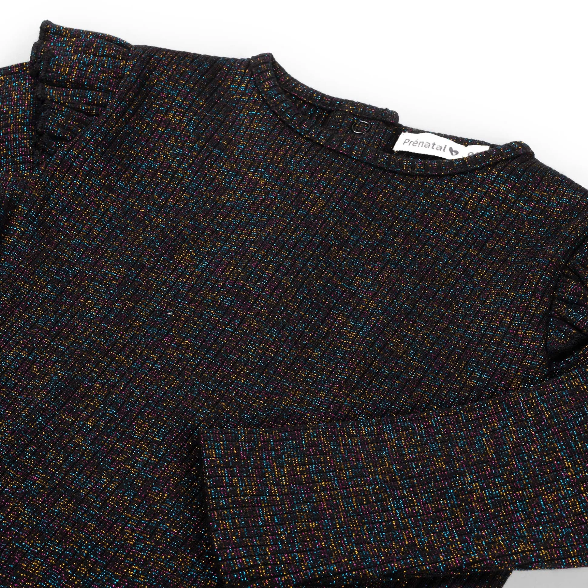 Dit Prénatal baby shirt is gemaakt van een fijne katoen 5×2 rib kwaliteit met glitters in de stof. Het shirt heeft lange mouwen met een ruffle over de schouder en een ronde hals met knoopsluiting op de achterzijde tot en met maat 98. Leuke tip voor de feestdagen! Het shirt is voorzien van een effen ondergrond met meerdere kleuren glitters in de stof en is goed te combineren met de rest van de Prénatal collectie. Verkrijgbaar in de maten 56 t/m 122. Kwaliteit: 75% biologisch katoen, 20% lurex, 5% elastaan. Binnenstebuiten wassen op 40 graden met gelijke kleuren.
