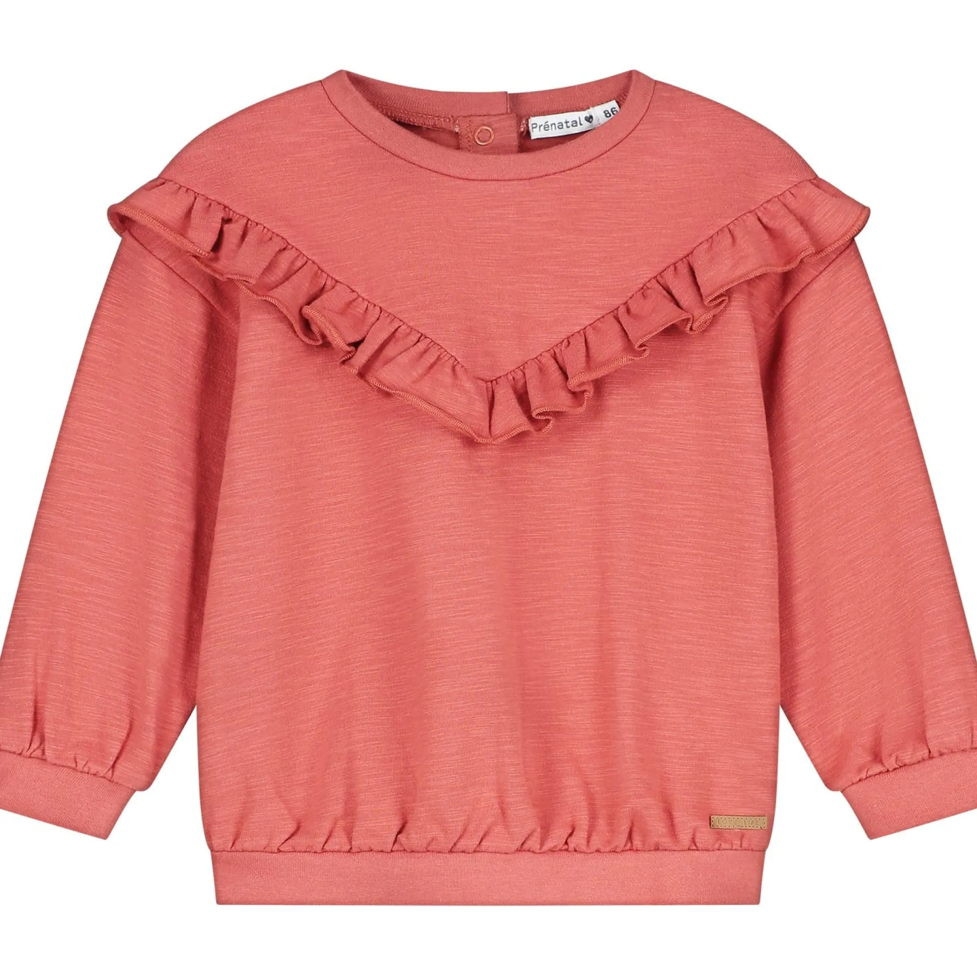 Deze Prénatal baby sweater is gemaakt van een zachte katoenen sweat kwaliteit. De sweater heeft een ronde hals met knoopsluiting op de rug tot en met maat 98. De sweater is voorzien van elastische boorden bij de mouwen en heup en heeft een grote ruffle rondom over de borst en mouwen. Het model van deze sweater is oversized met afhangende schouders. Deze sweater is goed te combineren met de rest van de Prénatal collectie. Verkrijgbaar in de maten 56 t/m 122. Kwaliteit: 95% biologisch katoen,5% elastaan. Binnenstebuiten wassen op 40 graden met gelijke kleuren. Dit product is getest op schadelijke chemicaliën en gecertificeerd volgens standaard 100 door OEKO-TEX® BJ020 169567 TESTEX.