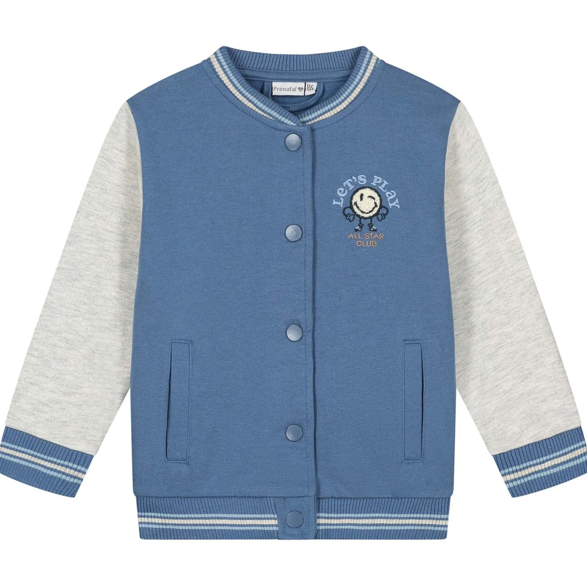 Dit Prénatal vest is gemaakt van een comfortabele katoenen kwaliteit. Het vest heeft het model van een baseball jacket en heeft een blauwe met beige kleur. Het vest is voorzien van steekzakken en drukknopen. Het vest is goed te combineren met de rest van de Prénatal collectie en is verkrijgbaar in de maten 56 t/m 122. Kwaliteit: 80% katoen en 20% polyester. Binnenstebuiten wassen op 40 graden met gelijke kleuren. Dit product is getest op schadelijke chemicaliën en gecertificeerd volgens standaard 100 door 2017OK0029 AITEX.