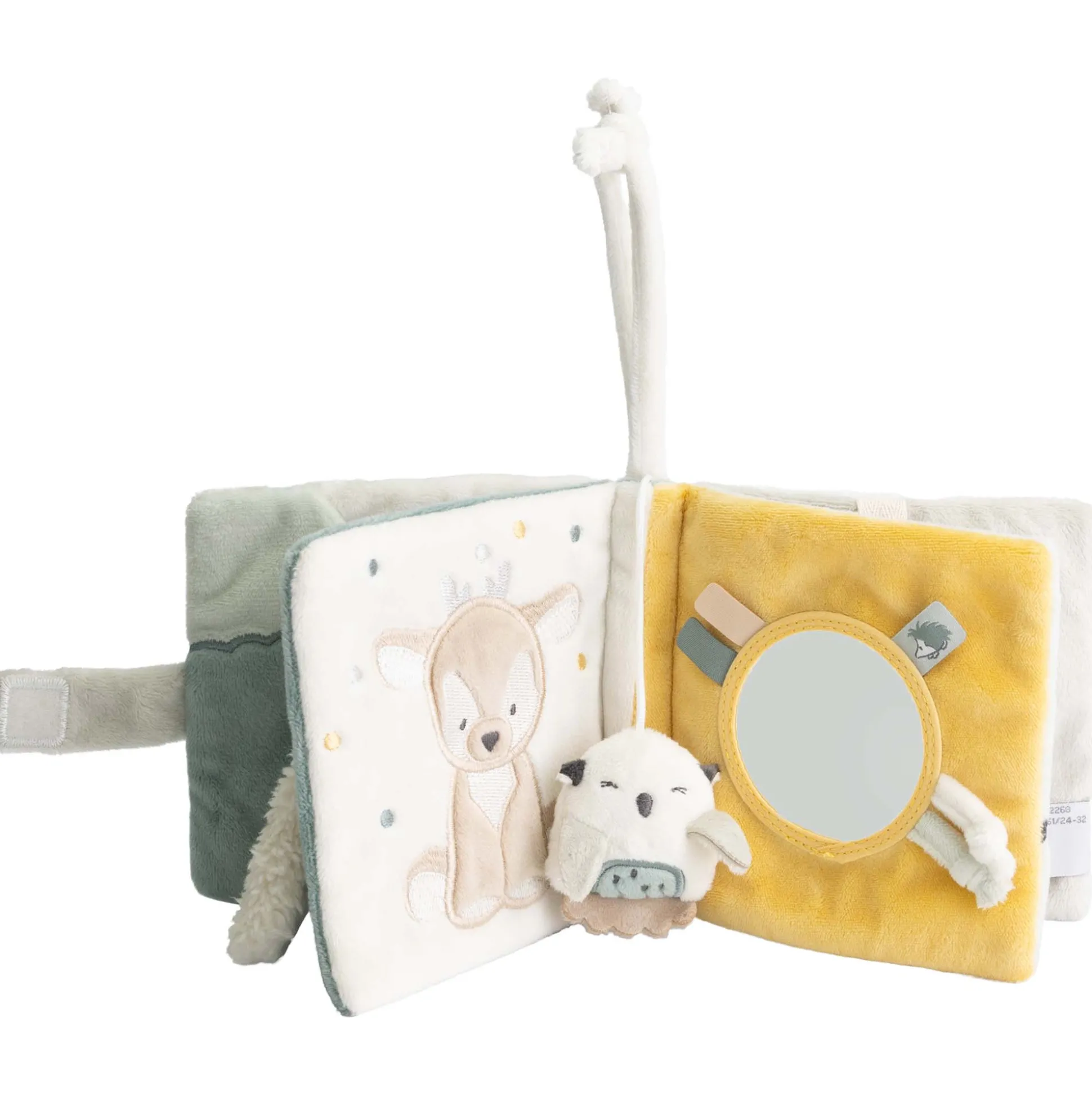Je kindje leert alle vriendjes kennen met dit vrolijke buggyboekje uit het Kleine Vriendjes thema van Prénatal. Je kindje kan knisperen met de oortjes en het boekje laten piepen of zichzelf bekijken in het spiegeltje. Dankzij de lus aan het boekje kan je hem overal aan bevestigen. Het buggyboekje voelt heerlijk zacht aan. Ontdek ook de andere artikelen in het Kleine Vriendjes thema van Prénatal.