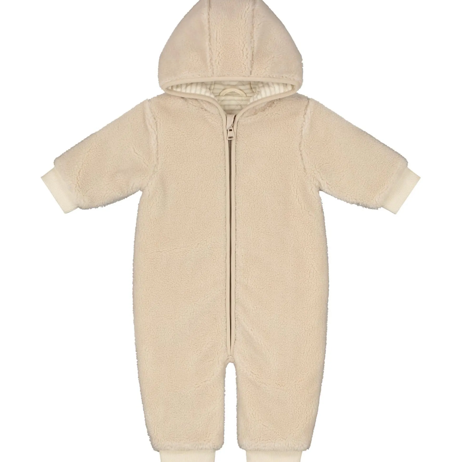 Dit Prénatal buitenpak is gemaakt van een fijne teddy kwaliteit. Het pak heeft een beige kleur en is voorzien van een capuchon en een lange ritssluiting zodat het gemakkelijk aan en uit te trekken is bij je kleintje. Verkrijgbaar in de maten 56 t/m 80. Kwaliteit buitenstof: 100% polyester. Kwaliteit voering: 100% katoen. Binnenstebuiten wassen op 30 graden met gelijke kleuren.