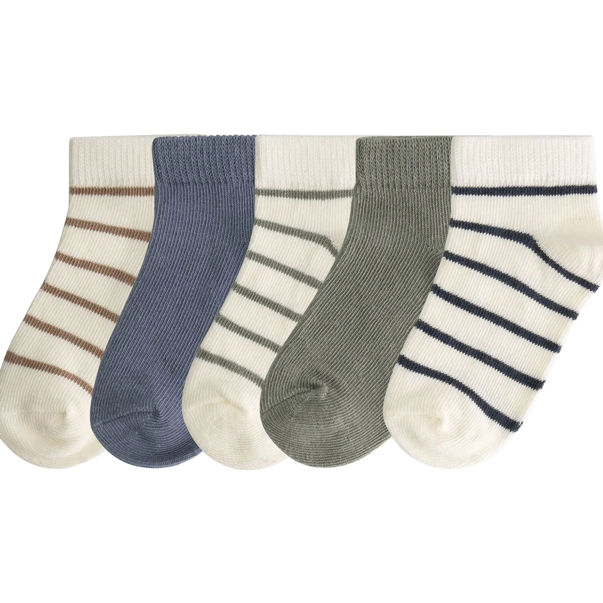 Deze Prenatal enkelsokken 5 paar bestaat uit 5 verschillende paar sokken. De kleuren van de sokken zijn afgestemd op de Prénatal kleding collectie. Door het ribboordje bovenaan blijven de sokjes goed zitten bij je kleintje. De sokken zijn verkrijgbaar in baby en peuter maten. kwaliteit: 75% katoen, 20% polyamide en 5% elastaan. Binnenstebuiten wassen op 40 graden met gelijke kleuren.