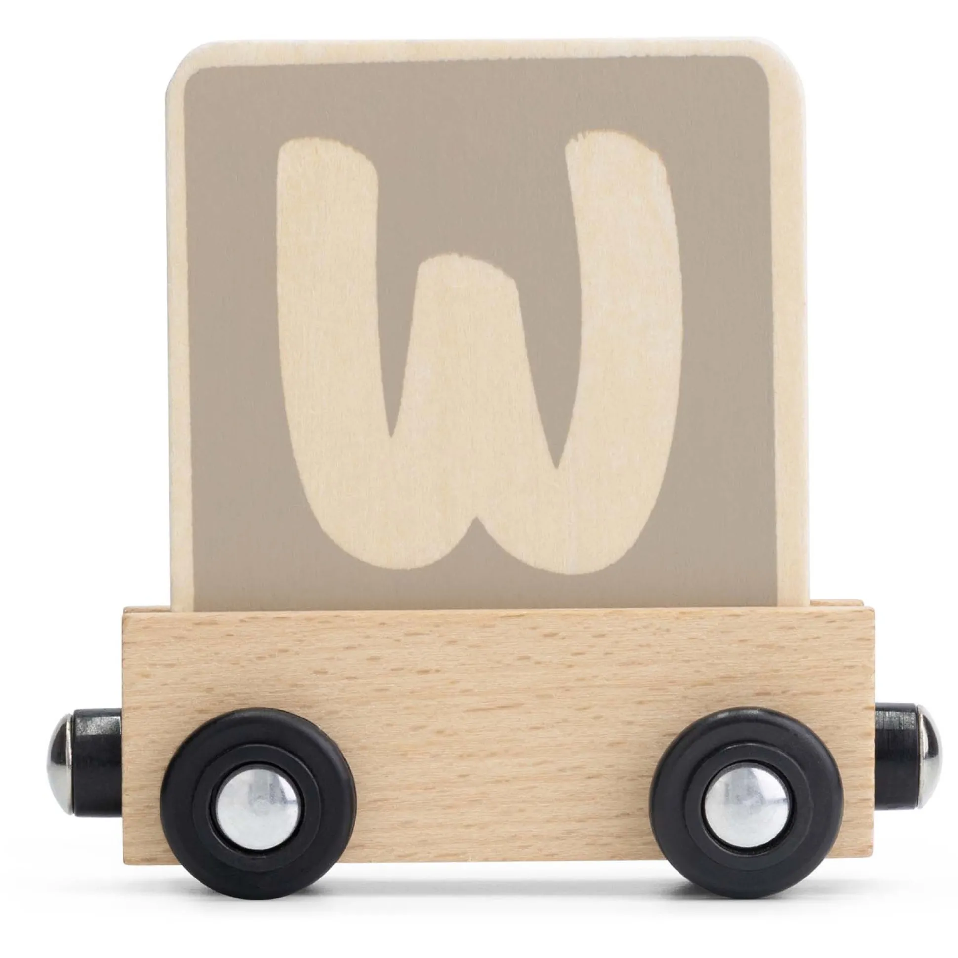Met de houten lettertrein kun je iedere naam maken die je wil. De lettertrein staat leuk op iedere babykamer. Naast decoratief kan er natuurlijk ook uren met de trein gespeeld worden. Wil je de naam laten beginnen als een echte trein? Wij hebben uiteraard een wagon die de vooraan in de trein kan. Bestaat de naam van je kleintje uit meerdere woorden? Gebruik de wagon als spatie of om de trein mee af te sluiten. De lettertrein is ook een erg leuk kraamcadeau. Let op: De lettertreinletters worden zonder onderstel verkocht, de onderstelletjes kunnen los bij ons gekocht worden. Waarschuwing: Stickertje aan de achterkant van de letter niet verwijderen om: A. later te kunnen raadplegen. B. beschadiging van de verf te voorkomen.