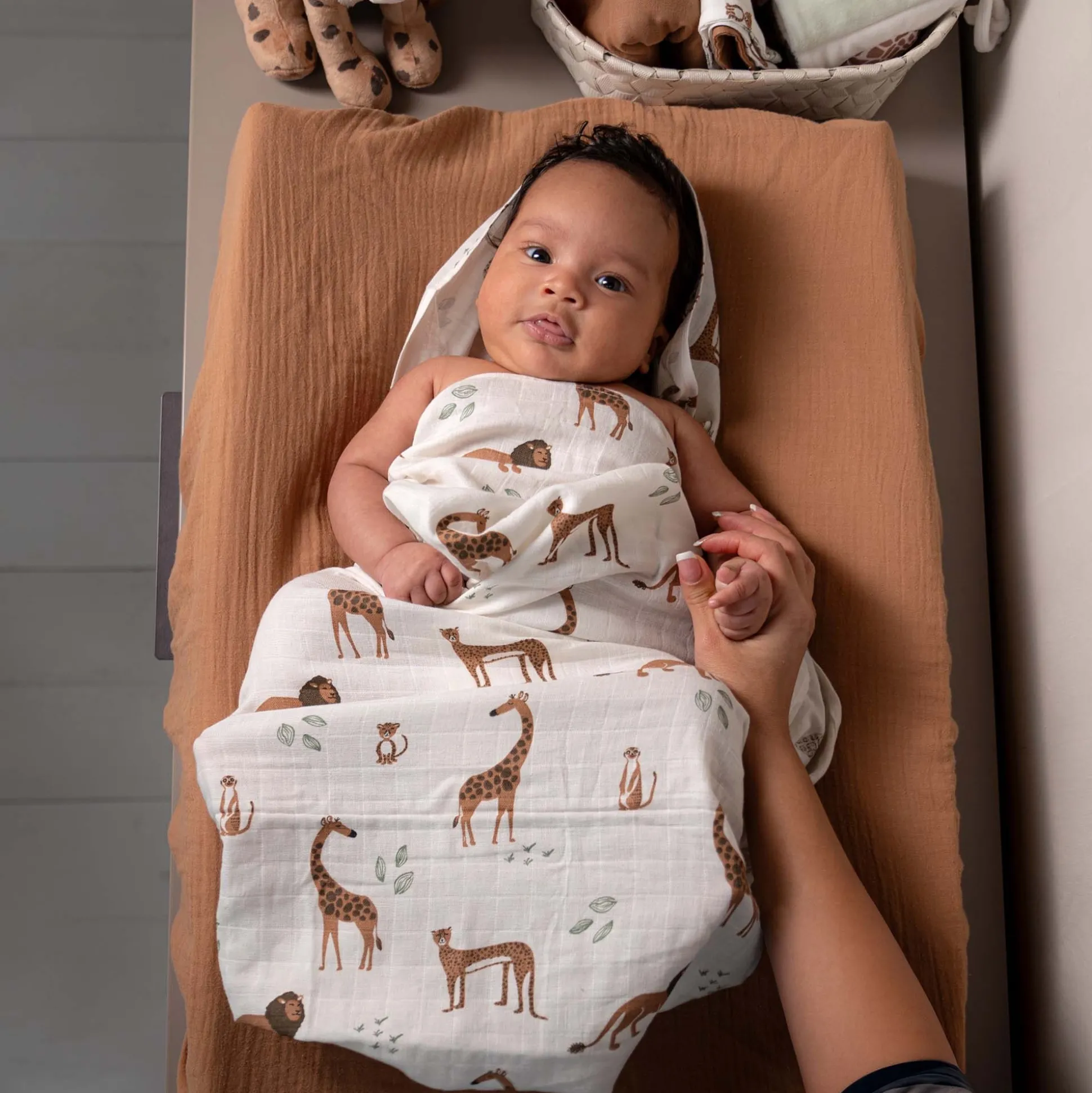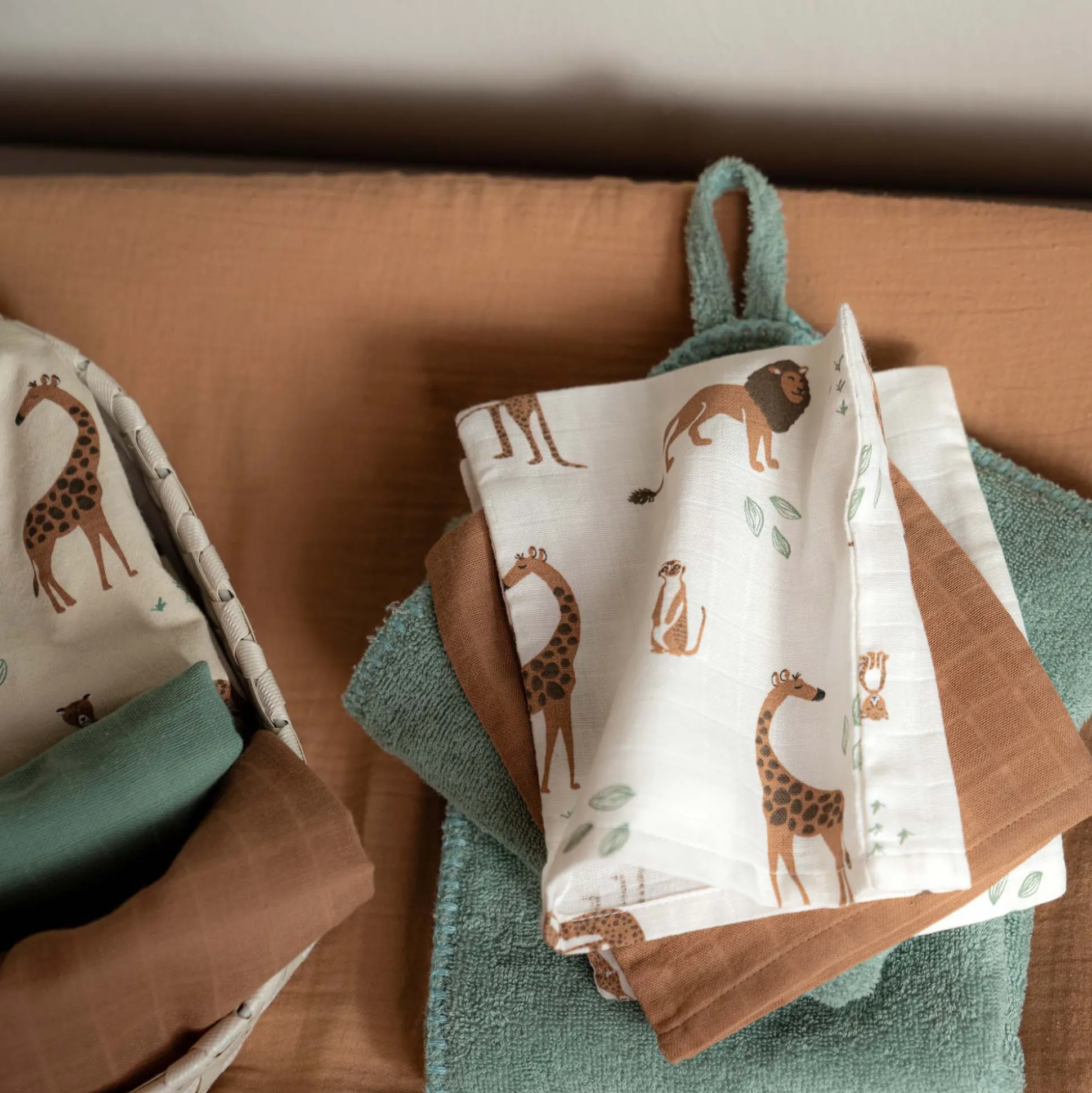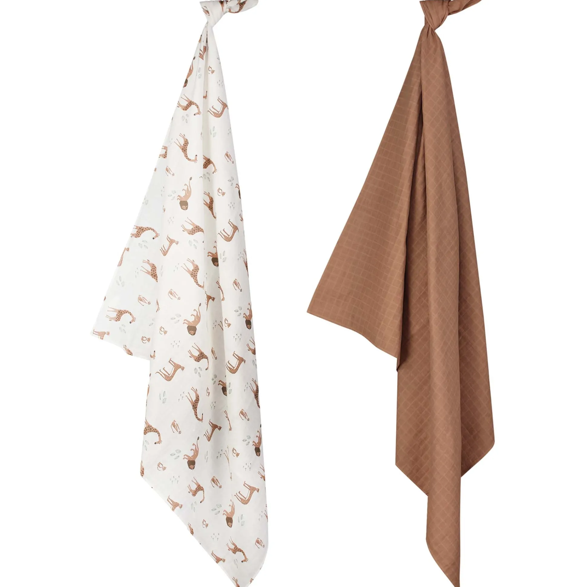 Deze Prénatal hydrofiel doeken uit de savanne collectie zijn van 100% katoen zeer gelijkmatig gesponnen garen gemaakt en daardoor over de gehele oppervlakte even dik en absorberend. De doeken, ook wel swaddles genoemd, helpen je bij het afdrogen en verzorgen van het tere babyhuidje, maar je kan het ook gebruiken als doekje of bijvoorbeeld onderlegger in je kinderwagen of bedje. De hydrofiel doeken zijn 115 x 115 cm en verpakt per 2 stuks.