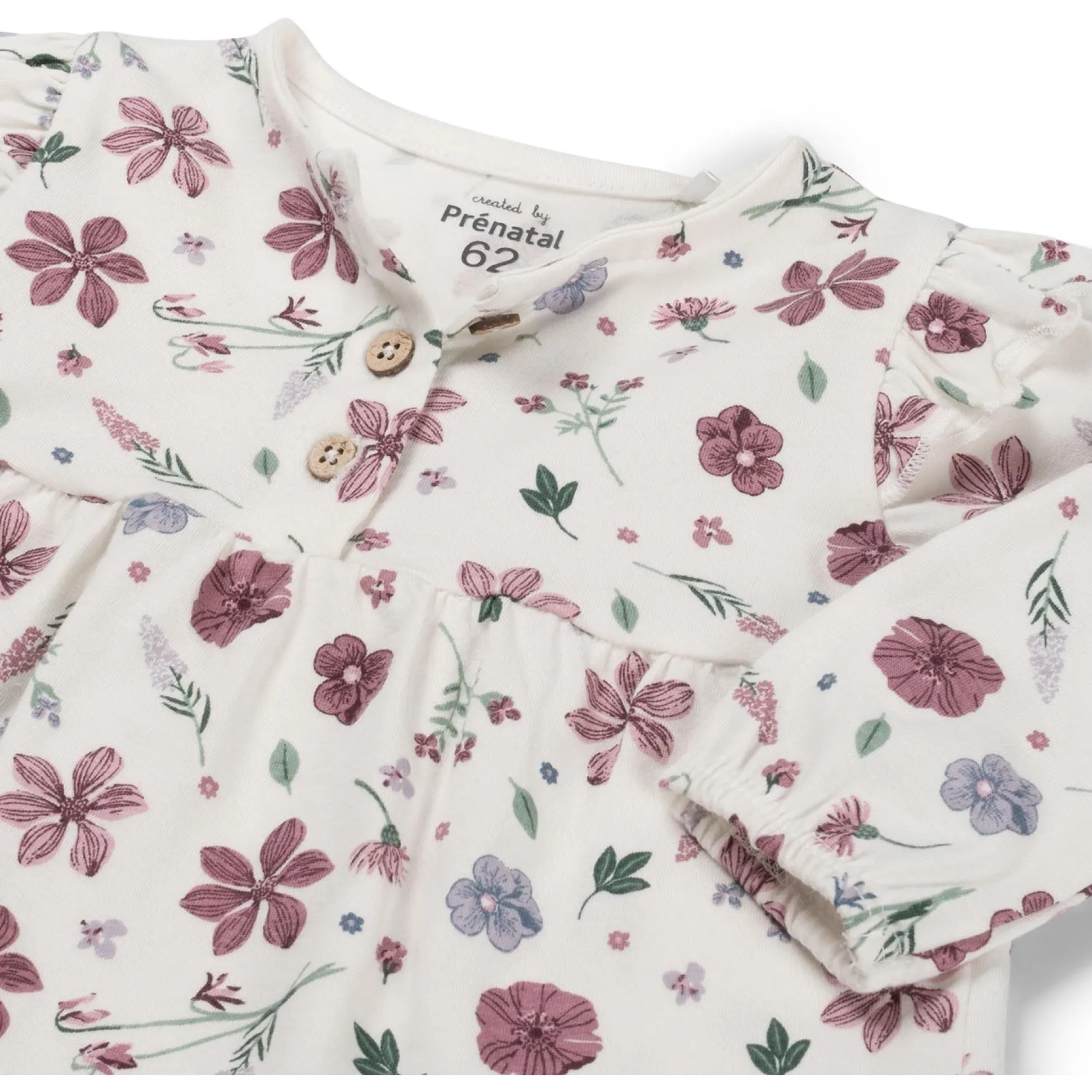 Deze Prénatal newborn jurk is gemaakt van een fijne katoenen kwaliteit. De jurk heeft een uitlopende fit. De jurk is voorzien van een schattige all over bloemen print en heeft ruffels op de schouders. Op de voorkant zitten een aantal knopen, waardoor de jurk gemakkelijk aan en uit te trekken is. De jurk is goed te combineren met de andere items uit de Limited collectie bij Prénatal. Verkrijgbaar in de maten 50 t/m 68. Kwaliteit: 95% biologisch katoen en 5% elastaan. Binnenstebuiten wassen op 40 graden met gelijke kleuren.