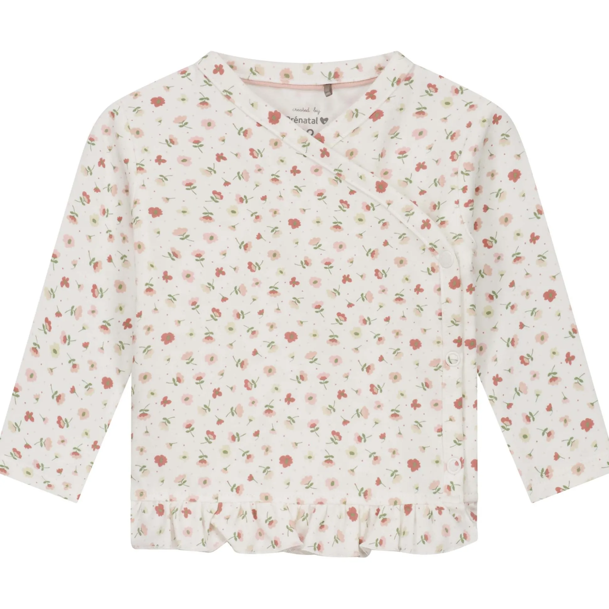 Dit Prénatal overslagshirt is gemaakt van een fijne katoenen kwaliteit. Het shirt heeft een mooie all over print en een ruffel aan de onderkant. Door de overslagsluiting is het shirt gemakkelijk aan en uit te trekken bij je kleintje. Het overslagshirt is goed te combineren met de andere items uit de Hello New Day collectie bij Prénatal. Verkrijgbaar in maat 44 t/m 68. Kwaliteit: 95% biologisch katoen en 5% elastaan. Binnenstebuiten wassen op 40 graden met gelijke kleuren.