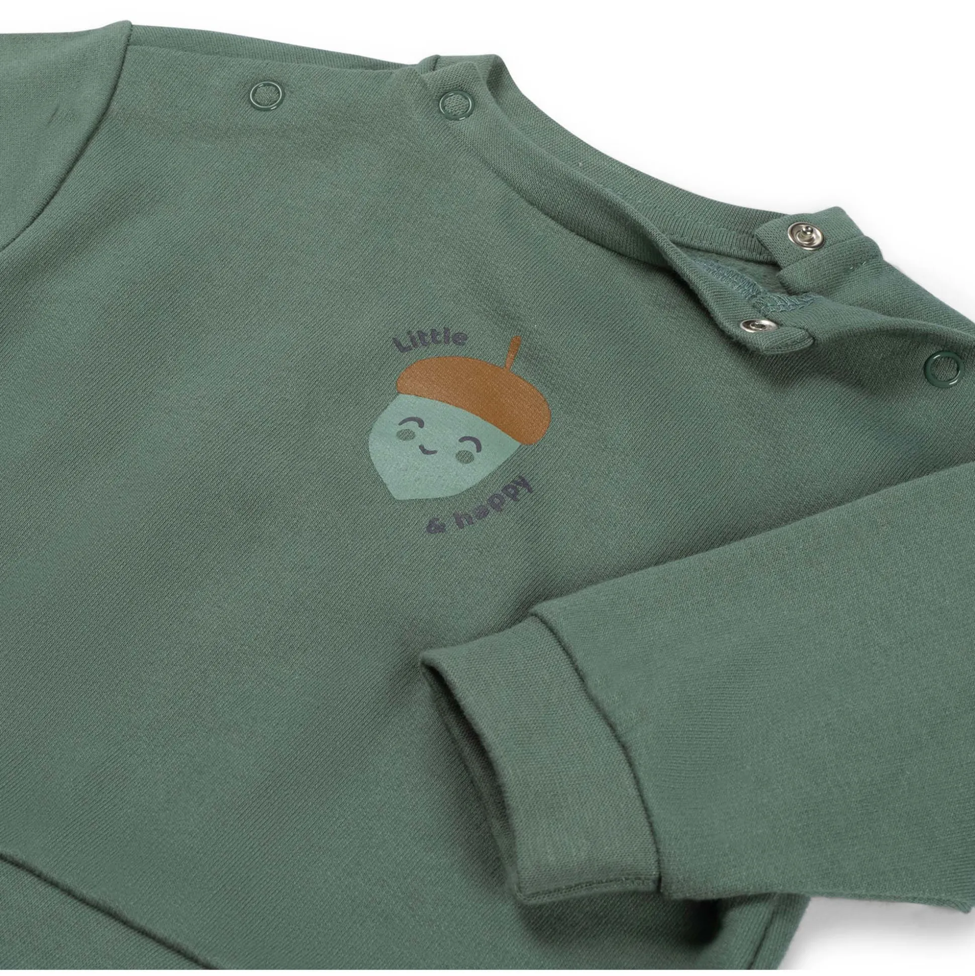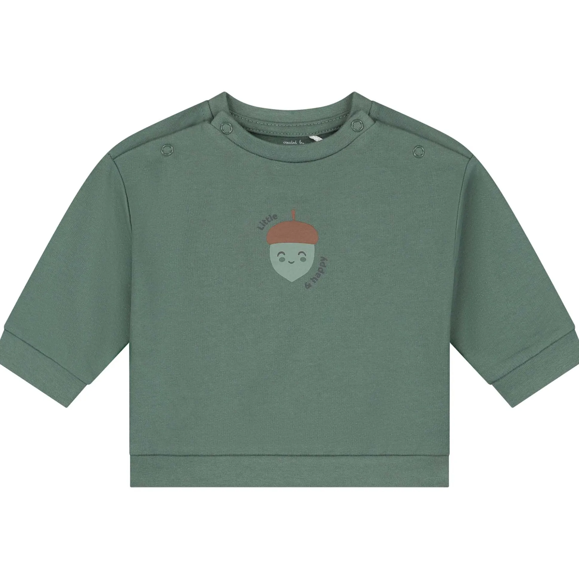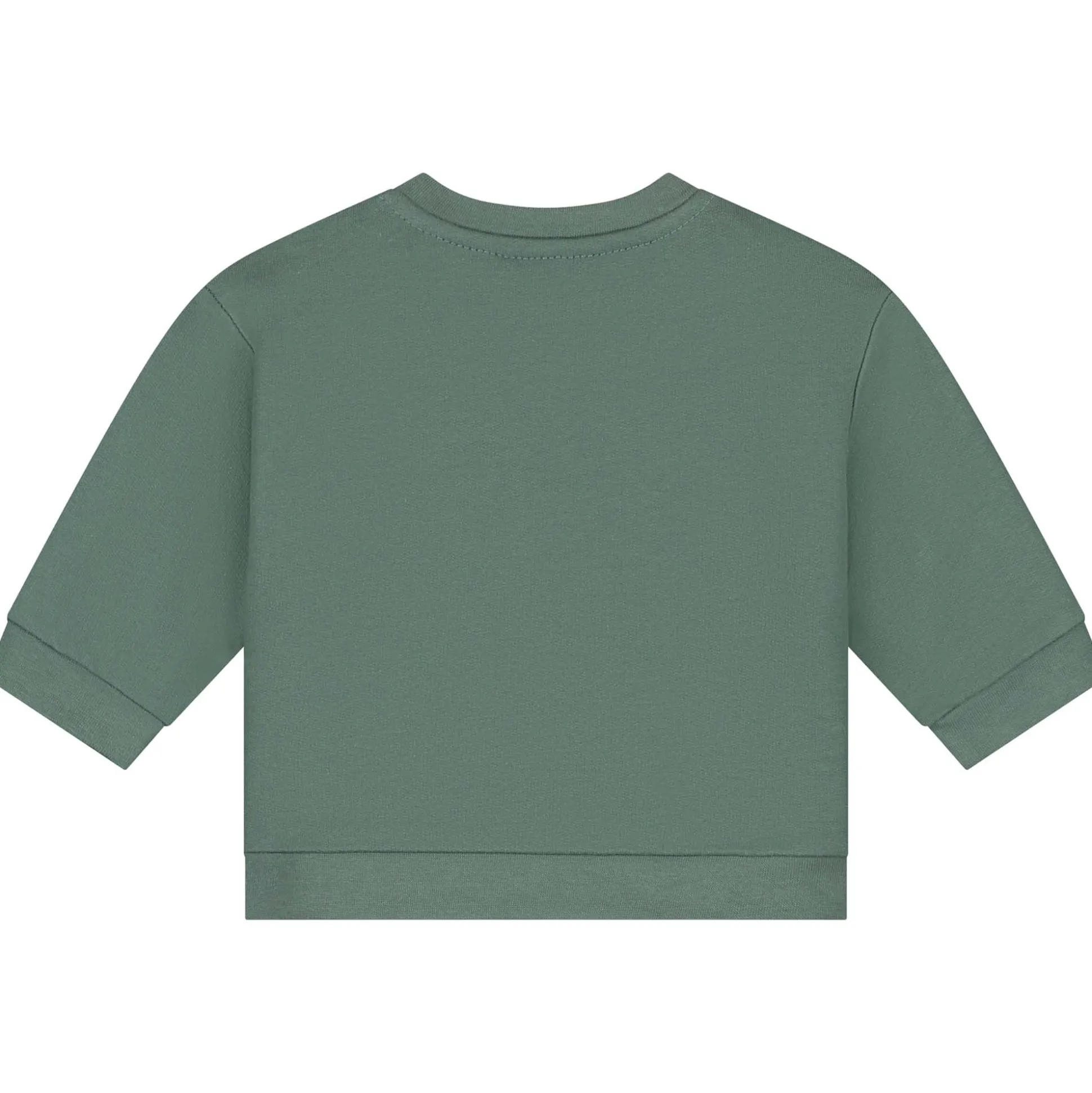 Deze Prénatal newborn sweater is gemaakt van een zachte katoenen fleece kwaliteit. De sweater is door de knoopjes op de schouder gemakkelijk aan en uit te trekken bij je kleintje. De sweater heeft een mooie groene kleur , een print op de borst en lange mouwen. De sweater is goed te combineren met de andere items uit de Limited winter collectie. Verkrijgbaar in de maten 50 t/m 68. Materiaal: 100% biologisch katoen. Wasvoorschrift: binnenstebuiten wassen op 40 graden met gelijke kleuren.