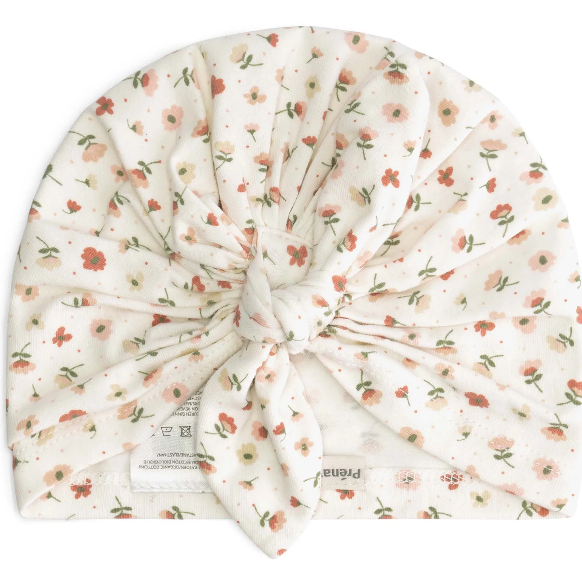 Deze Prénatal tulband muts is gemaakt van een fijne katoenen kwaliteit. Dit is een fijne tulband muts met een mooie all over bloemenprint. Door de zachte elastische stof is deze erg makkelijk om te doen bij je kleintje. De tulband is goed te combineren met de andere items uit de Hello new day collectie bij Prénatal. Verkrijgbaar in 1 maat. Materiaal 95% biologisch katoen en 5% elastaan. Wasvoorschrift: binnenstebuiten wassen op 40 graden.