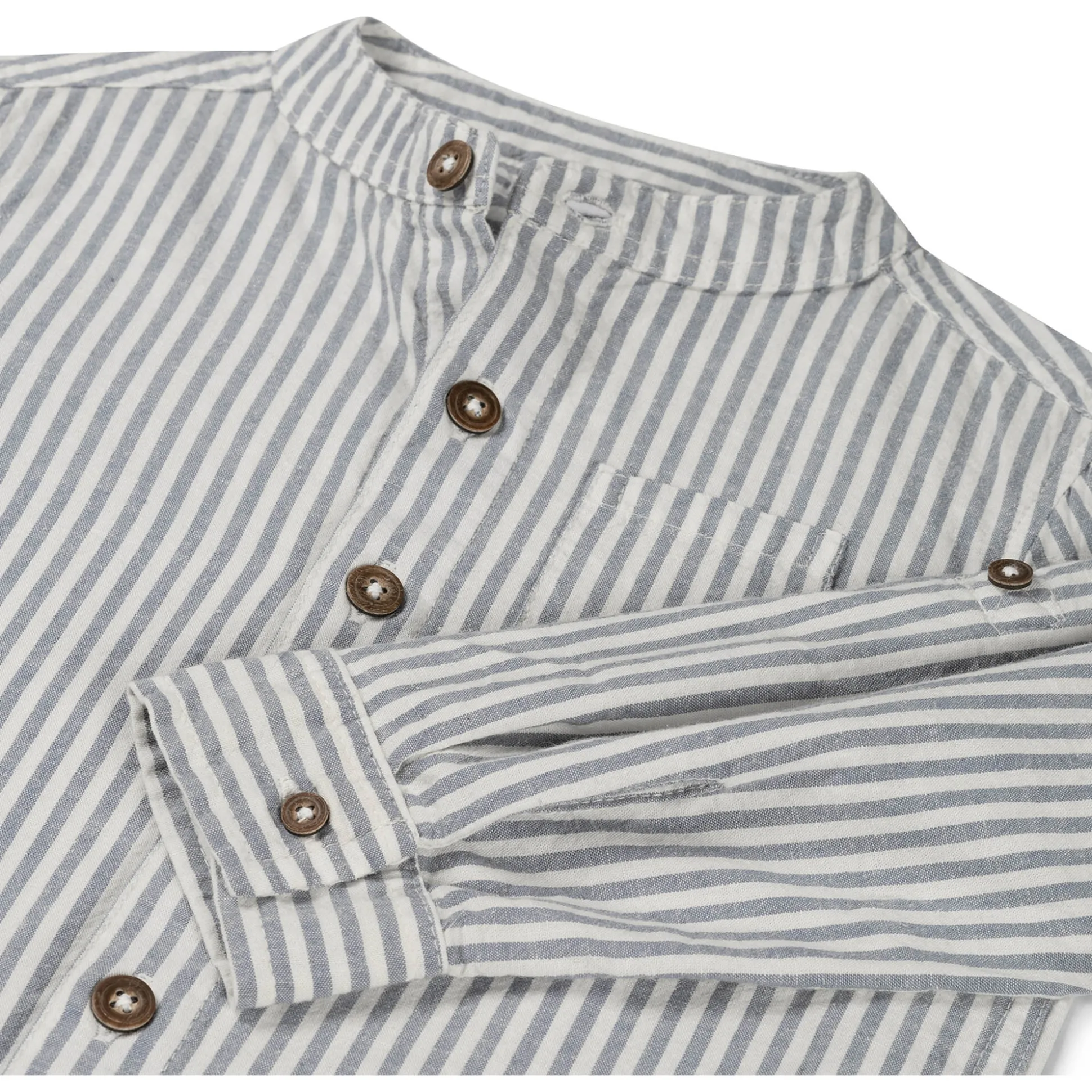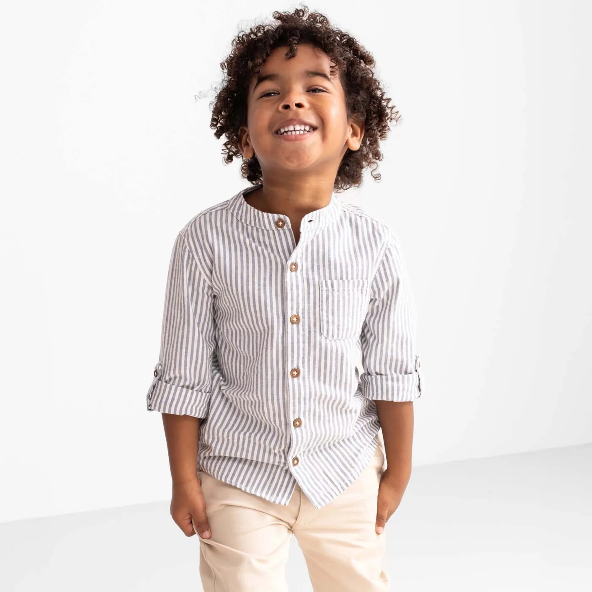 Deze Prénatal blouse is gemaakt van een fijne katoenen met linnen kwaliteit. De blouse heeft lange oprol mouwen en een knoopsluiting aan de voorzijde. De blouse heeft een blauw met wit gestreept dessin en is goed te combineren met de rest van de Prénatal collectie. Hierin zal je kindje stralen tijdens de feestdagen en bruiloften. Verkrijgbaar in de maten 56 t/m 122. Kwaliteit: 80% katoen en 20% linnen. Binnenstebuiten wassen op 30 graden met gelijke kleuren.