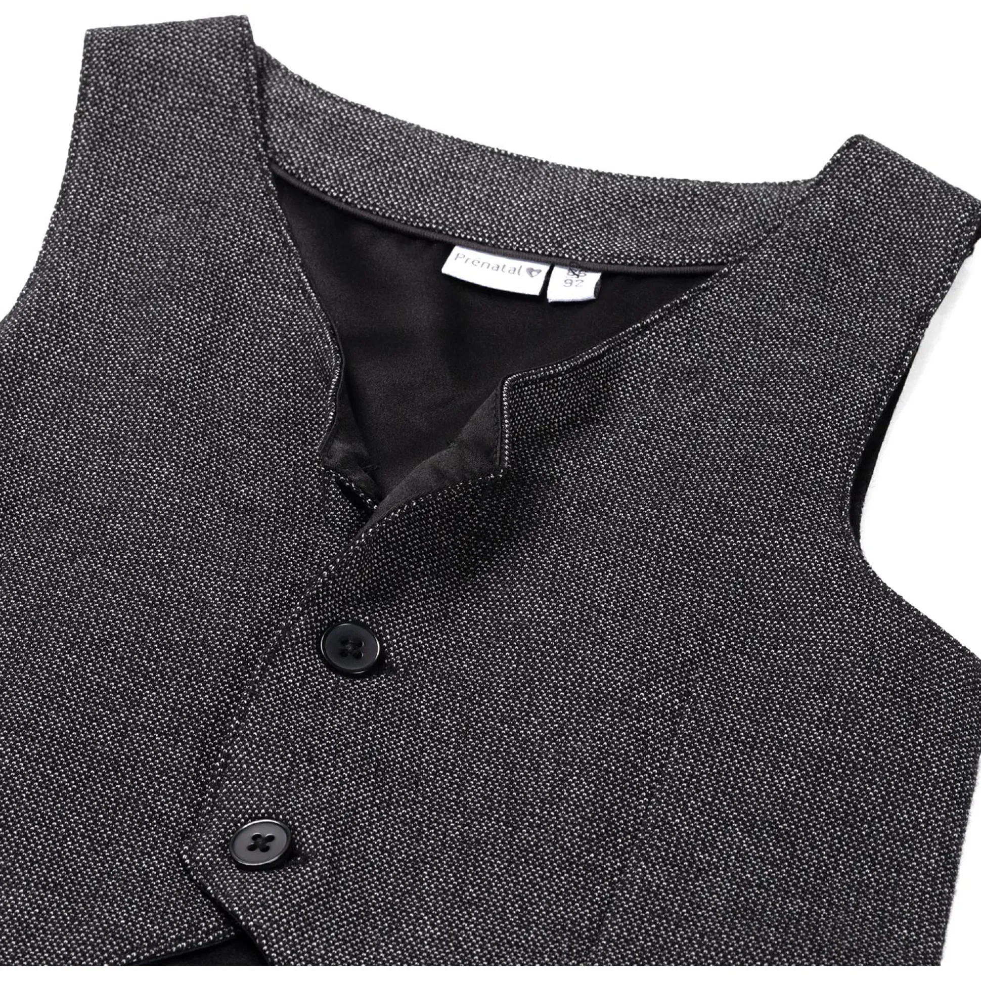 Dit Prénatal peuter gilet is gemaakt van een fijne pique jacquard kwaliteit. Het gilet heeft een knoopsluiting aan de voorzijde en is mooi te dragen over de blouse uit de Prénatal collectie. Het gilet heeft een donkergrijze kleur. Het gilet is goed te combineren met de rest van de Prénatal collectie. Hierin zal je kindje stralen tijdens de feestdagen en bruiloften. Het gilet is verkrijgbaar in de maten 62/68 t/m 122/128. Kwaliteit: 100% katoen. Binnenstebuiten wassen op 40 graden met gelijke kleuren.
