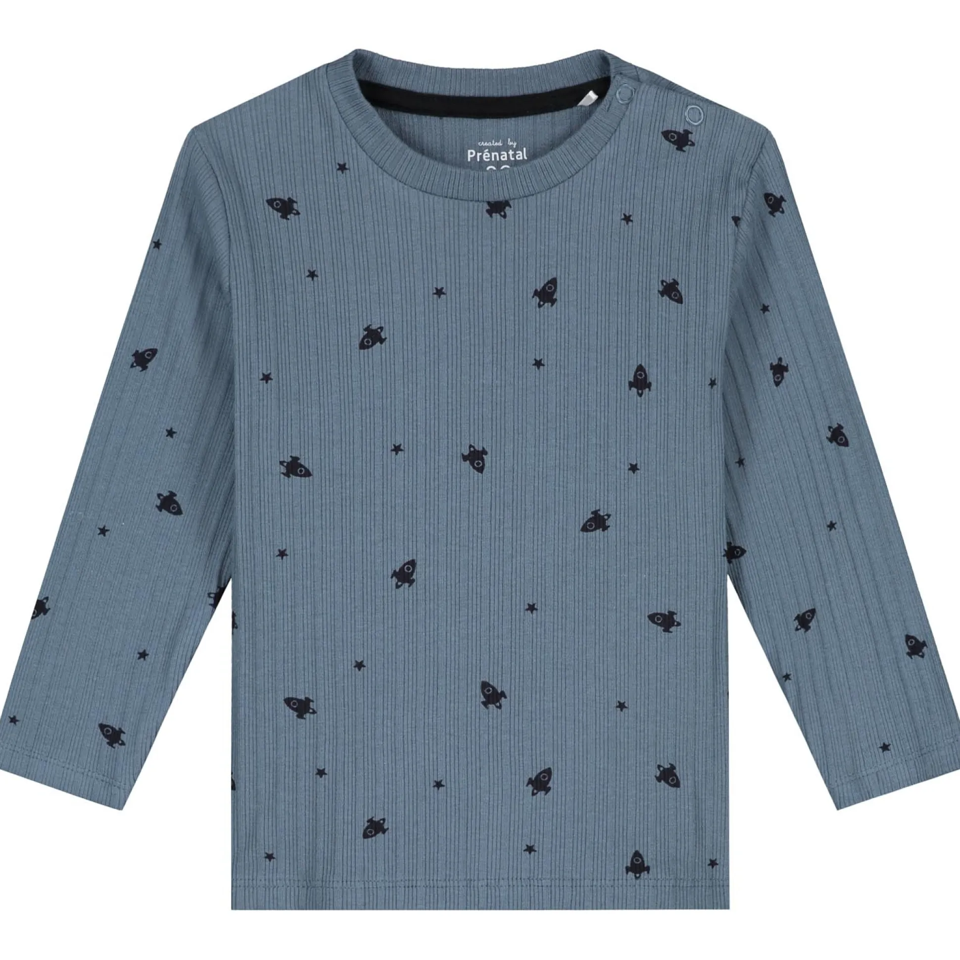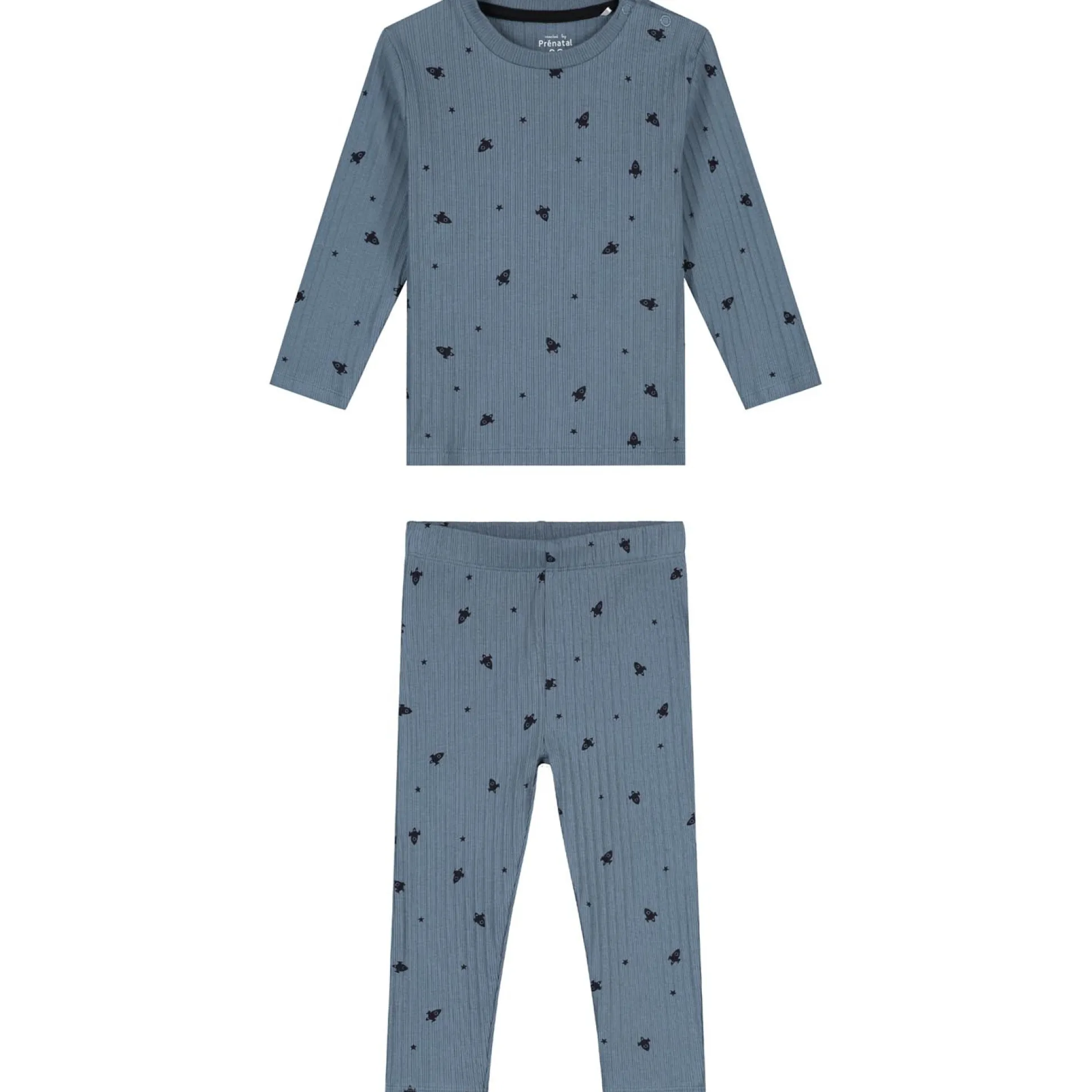 Deze Prénatal baby pyjama is gemaakt van een fijne katoenen rib kwaliteit. De pyjama heeft lange mouwen en een all over print met ruimtefiguren. De pyjama is gemakkelijk aan en uit te trekken door de envelophals voor de babymaten en de drukknopen op de schouders in de peutermaten.De drukknopten gaan tot maat 104. De pyjama is goed te combineren met de rest van de Prénatal collectie en is verkrijgbaar in de maten 50 t/m 122. Kwaliteit: 100% biologisch katoen. Binnenstebuiten wassen op 40 graden met gelijke kleuren.