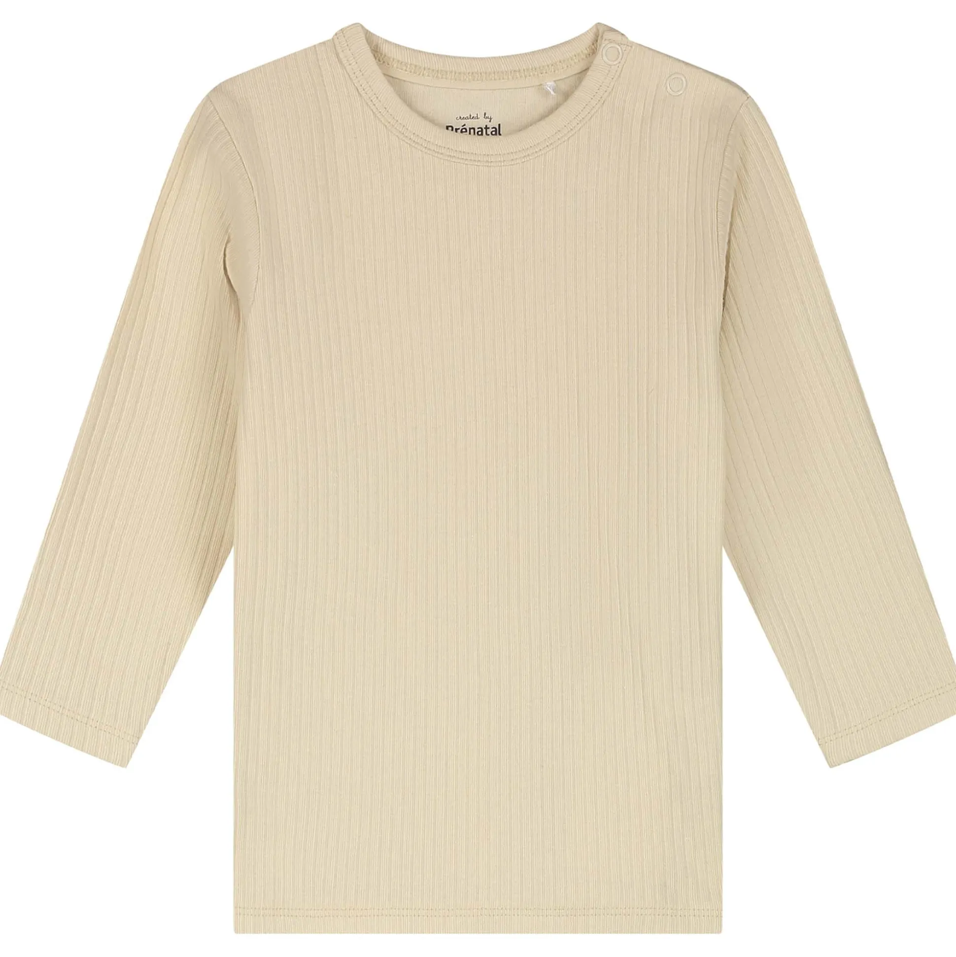 Deze Prénatal peuter pyjama is gemaakt van een zachte katoenen rib kwaliteit. De pyjama heeft lange mouwen en een mooie licht beige kleur. De pyjama is gemakkelijk aan en uit te trekken door de envelophals voor babymaten en de drukknopen op de schouders voor peutermaten. De pyjama is goed te combineren met de rest van de Prénatal collectie en is verkrijgbaar in de maten 56 t/m 122. Kwaliteit: 96% katoen, 4% elastaan. Binnenstebuiten wassen op 40 graden met gelijke kleuren.