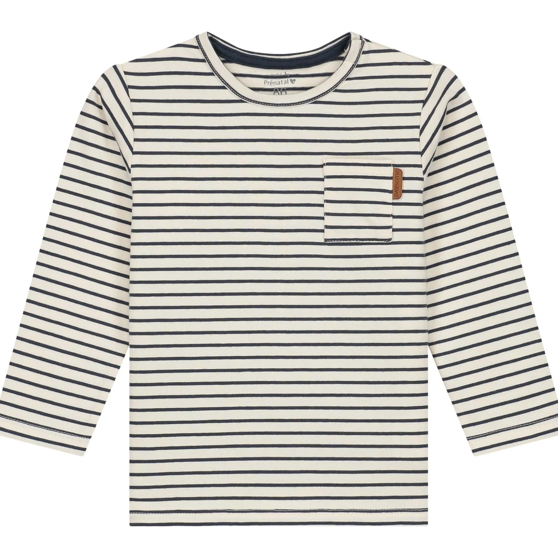 Dit Prénatal shirt is gemaakt van een fijne katoenen kwaliteit. Het shirt heeft lange mouwen en een zakje op de borst. Het shirt heeft een mooi streep dessin en is goed te combineren met de rest van de Prénatal collectie. Verkrijgbaar in de maten 56 t/m 116. Kwaliteit: 95% biologisch katoen en 5% elastaan. Binnenstebuiten wassen op 40 graden met gelijke kleuren. Dit product is getest op schadelijke chemicaliën en gecertificeerd volgens standaard 100 door OEKO-TEX® 23 HIN.84890 HOHENSTEIN HTTI.