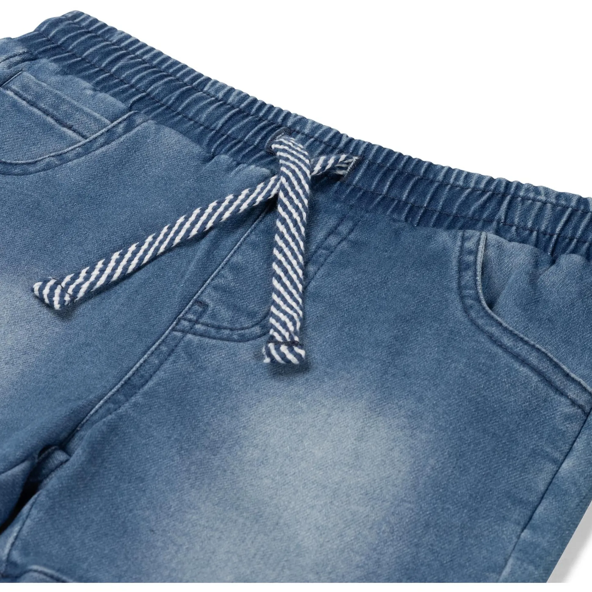 Deze Prénatal short is gemaakt van een comfortabele jog denim kwaliteit. De short heeft een elastische tailleband met een koordje, hierdoor is de short gemakkelijk aan en uit te trekken bij je kleintje. De short is voorzien van twee steekzakken en is is goed te combineren met de rest van de Prénatal collectie. Verkrijgbaar in de kleuren blauw, zwart en grijs in de maten 56 t/m 122. Kwaliteit: 80% katoen, 19% polyester en 1% elastaan. Binnenstebuiten wassen op 40 graden met gelijke kleuren.