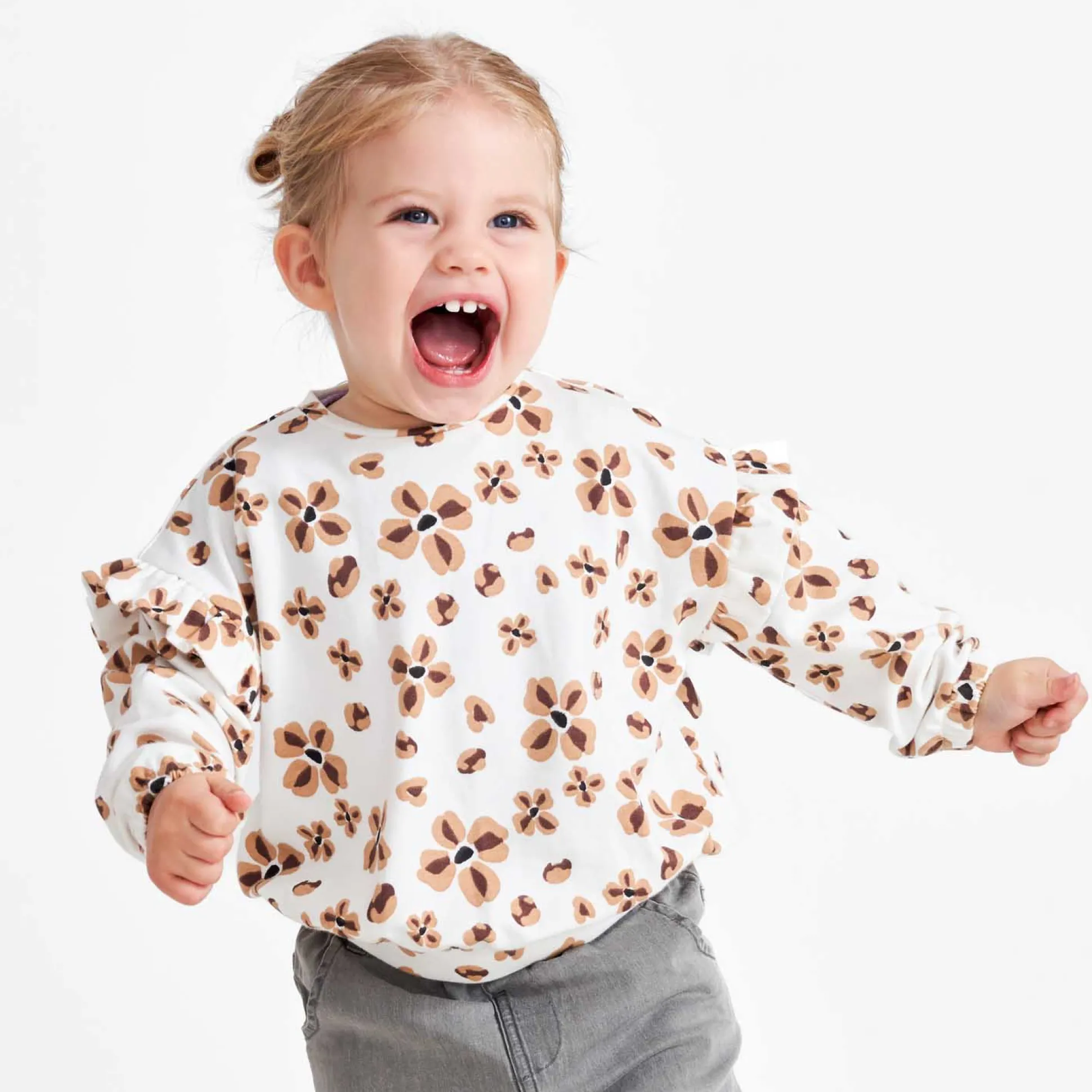 Deze Prénatal peuter sweater is gemaakt van een zachte en comfortabele katoenen sweat kwaliteit. De sweater heeft een ronde hals met knoopsluiting op de achterzijde tot en met maat 98 en afgezakte mouwen met ruffels op de naad. Aan de mouwen en onderkant zitten comfortabele ribboorden voor extra draagcomfort. De sweater is voorzien van een all-over print en is goed te combineren met de rest van de Prénatal collectie. Verkrijgbaar in maten 56 t/m 122. kwaliteit: 95% biologisch katoen, 5% elastaan. Binnenste buiten wassen op 40 graden. Dit product is getest op schadelijke chemicaliën en gecertificeerd volgens standaard 100 door OEKO-TEX® 23.HIN.84890 HOHENSTEIN HTTI.