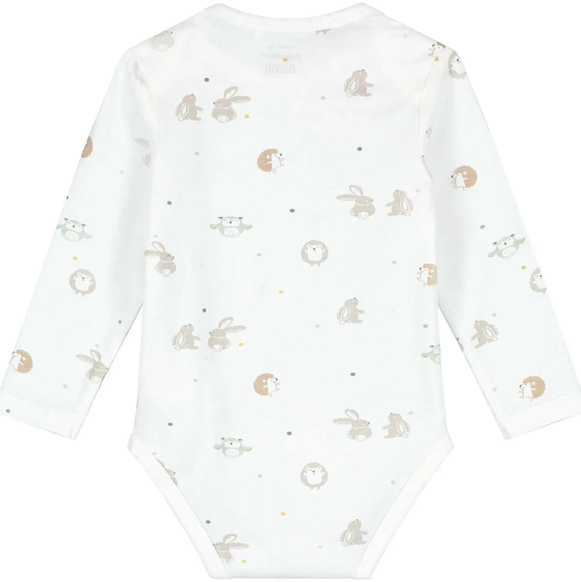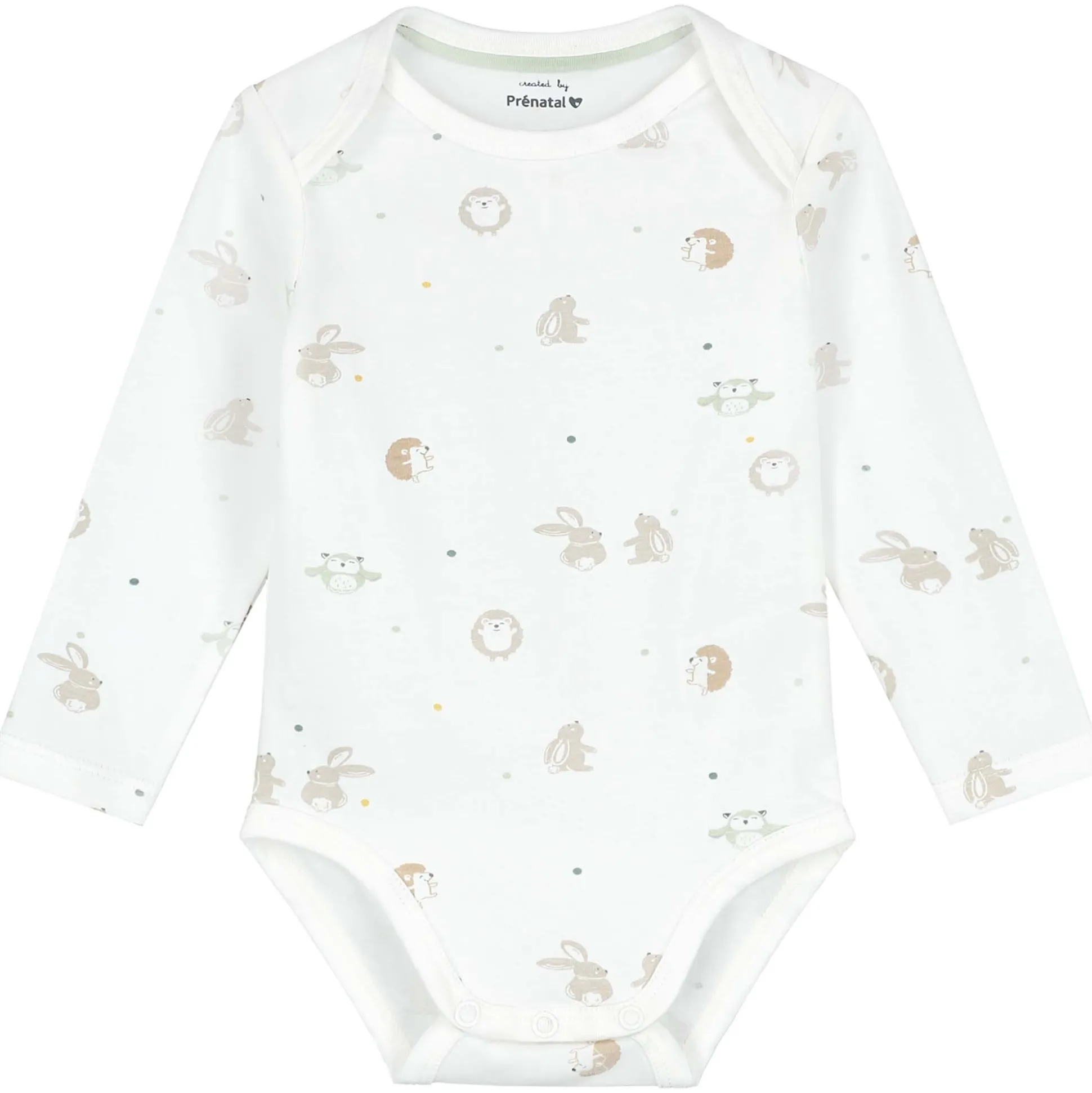 Prénatal romper Kleine Vriendjes lange mouwen all over print wit