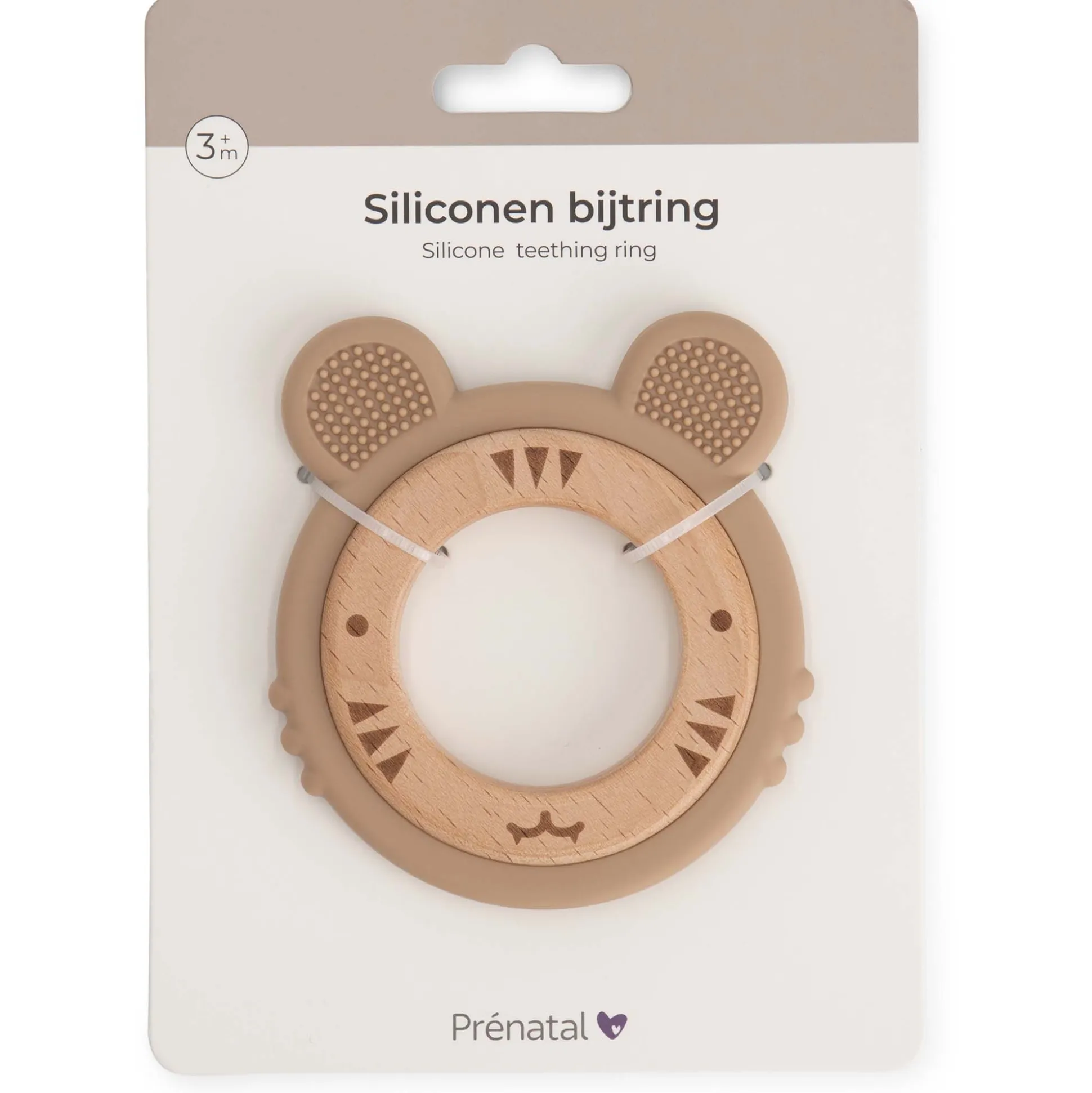 De siliconen bijtring in de vorm van een Tijger uit de nieuwe Prénatal siliconen collectie is zowel stoer als praktisch. Gemaakt van foodgrade siliconen en BPA-vrij. Het zachte materiaal masseert tandvlees en biedt verlichting tijdens het doorkomen van tandjes. Veilig, hygiënisch en eenvoudig schoon te maken in het bovenste rek van de vaatwasser. Was voor het eerste gebruik het product zorgvuldig.