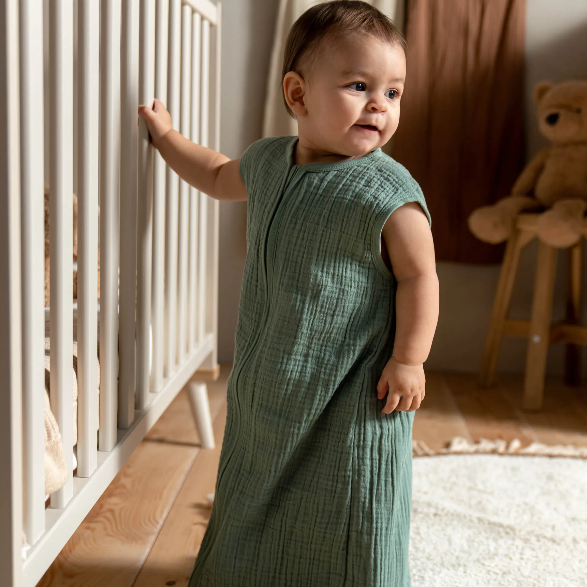 Deze Prénatal slaapzak is gemaakt van biologisch katoen in een comfortabele mousseline kwaliteit. De slaapzak is door de luchtige mousseline kwaliteit en TOG waarde van 0,5 erg geschikt voor de warmere nachten. De stof neemt goed vocht op en droogt snel. Het is een soepele stof wat lekker zacht aanvoelt op de huid van je kindje. De slaapzak is mouwloos en voorzien van een YKK rits. De slaapzak is verkrijgbaar in 7 verschillende kleuren in de maten56/62 t/m 98/104/110. Kwaliteit: 100% biologisch katoen. Binnenstebuiten wassen op 40 graden met gelijke kleuren.