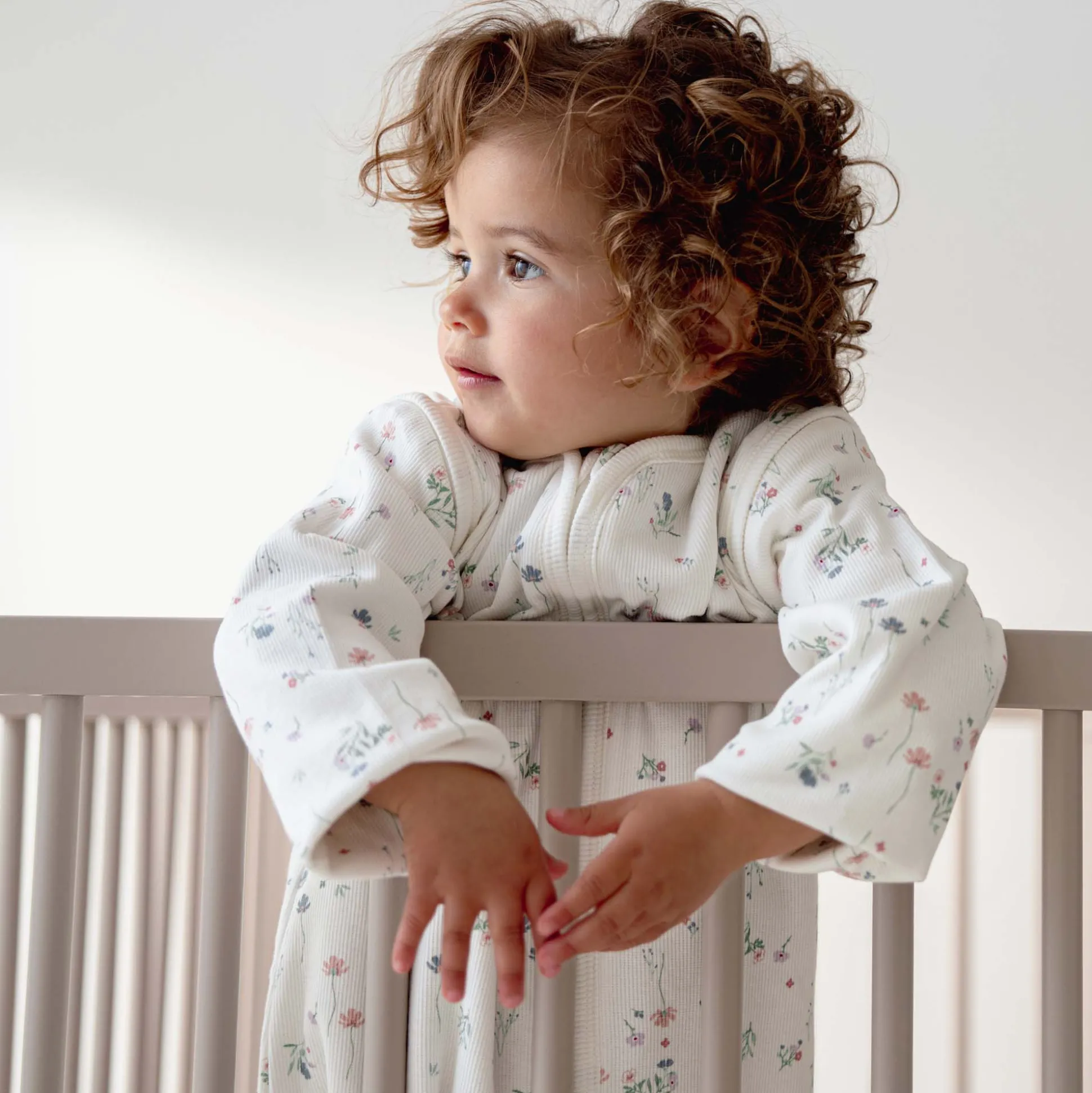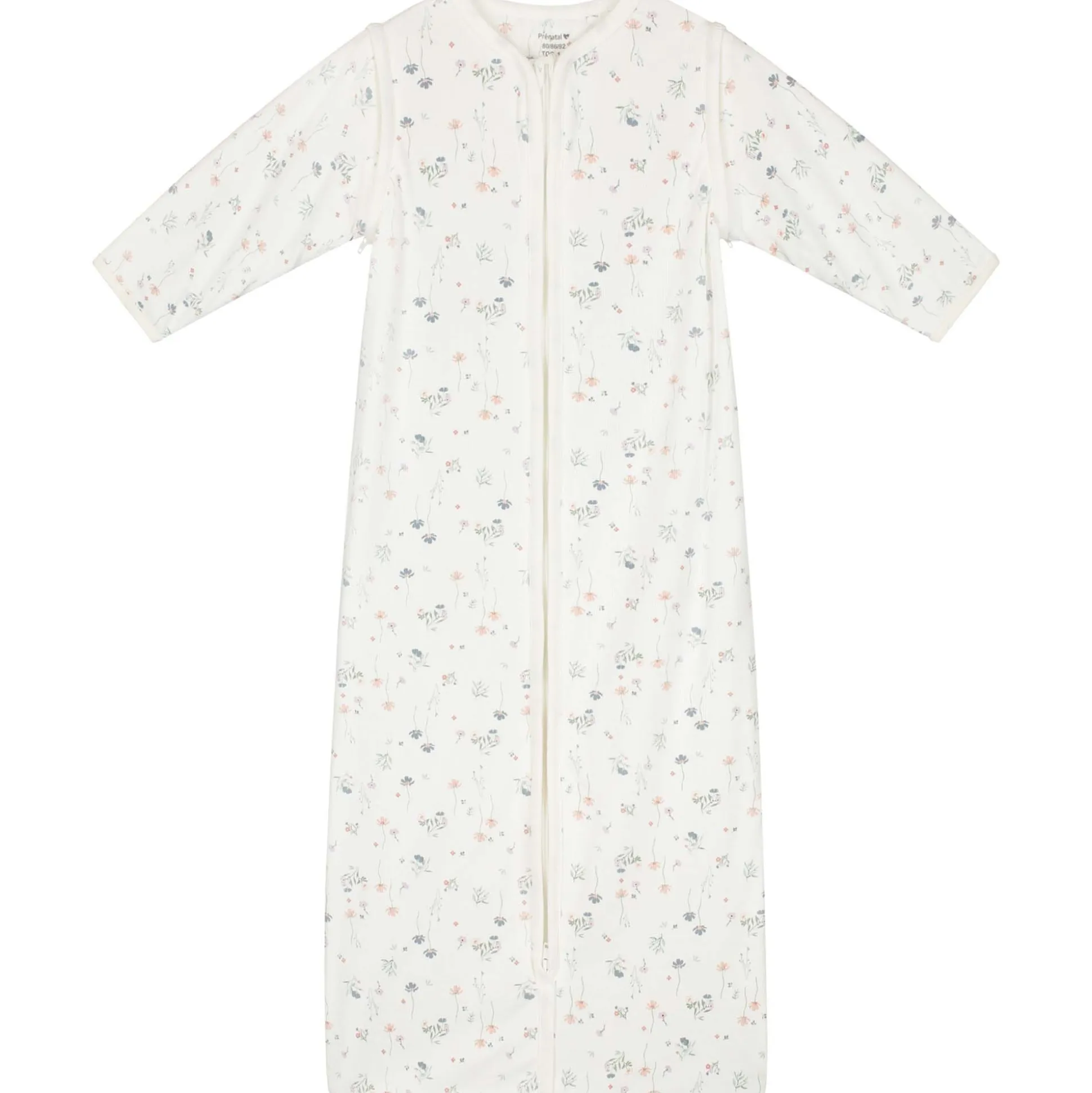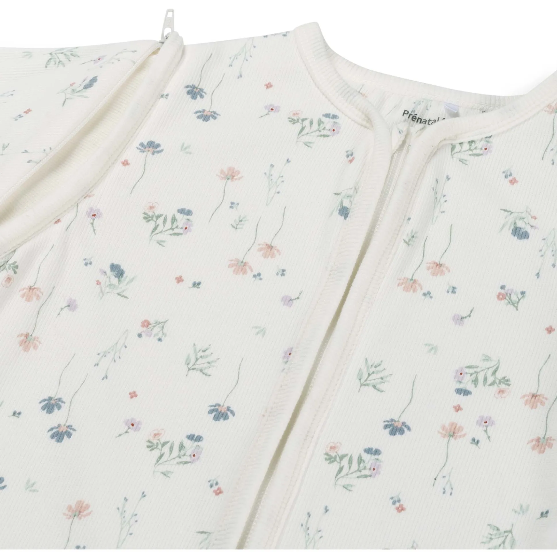 Deze Prénatal slaapzak is gemaakt van zacht biologisch katoen met een ribstructuur. De slaapzak is niet gevoerd, dus lekker luchtig voor je kleintje. De slaapzak heeft afritsbare mouwen en een ivoor witte ondergrond met een ivoor witte all over bloemenprint. De slaapzak is goed te combineren met de rest van de Prénatal collectie en is verkrijgbaar in de maten 56/62 t/m 98/104/110. Binnenstebuiten wassen op 40 graden met gelijke kleuren. Kwaliteit: 96% biologisch katoen en 4% elastaan. Wij adviseren om de slaapzak niet te drogen in de droger. De TOG-waarde van de slaapzak is 1.0 en daardoor perfect te gebruiken voor de lente t/m de herfst.