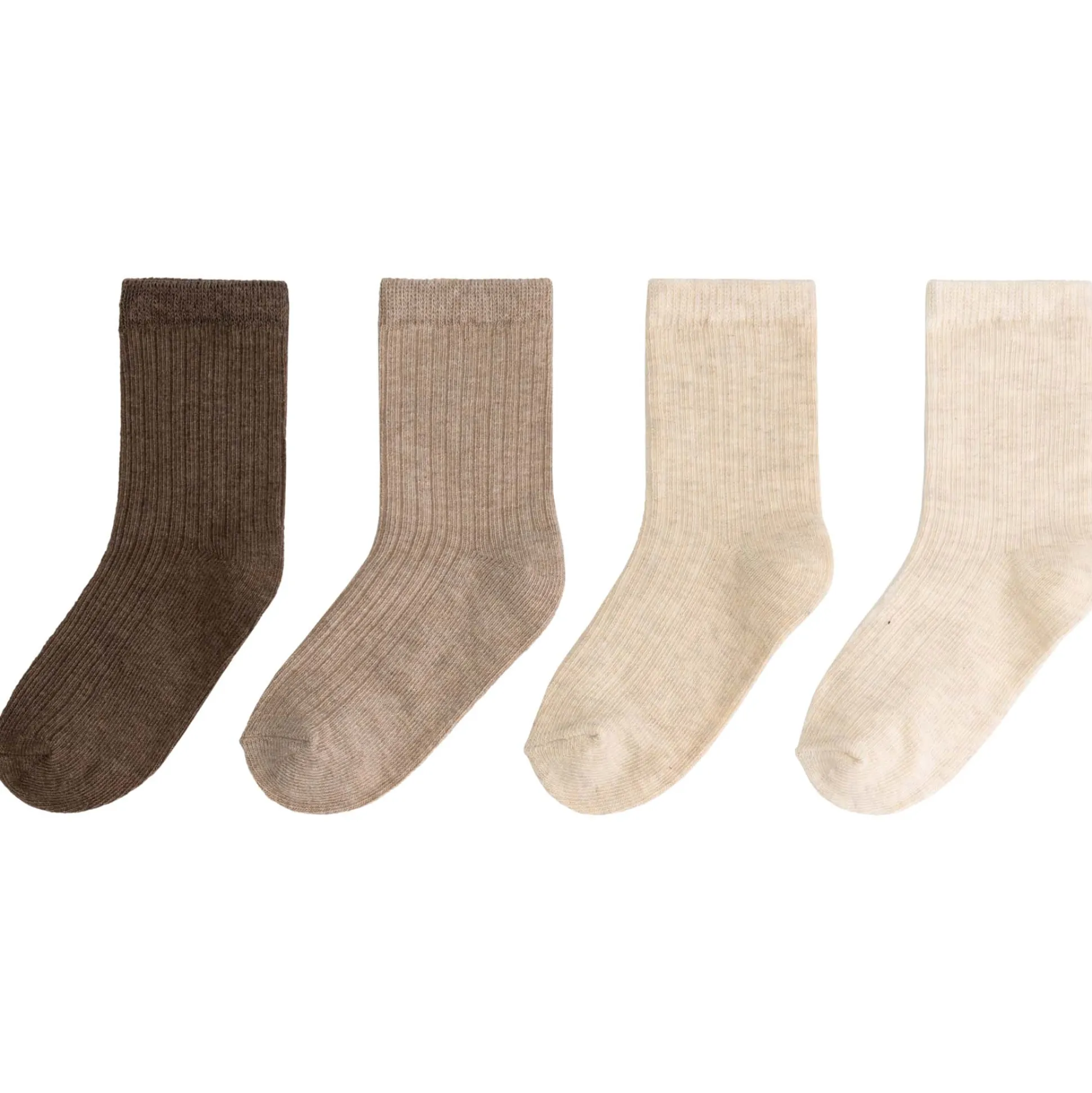 Prénatal sokken bestaande uit 4 paar. De sokken zijn gemaakt van een zachte rib kwaliteit. De sokken hebben de kleuren beige met bruin tinten. De sokken zijn verkrijgbaar in de maten 0-3 maanden t/m maat 26/28. Kwaliteit: 75% katoen, 20% polyamide, 5% elastaan.