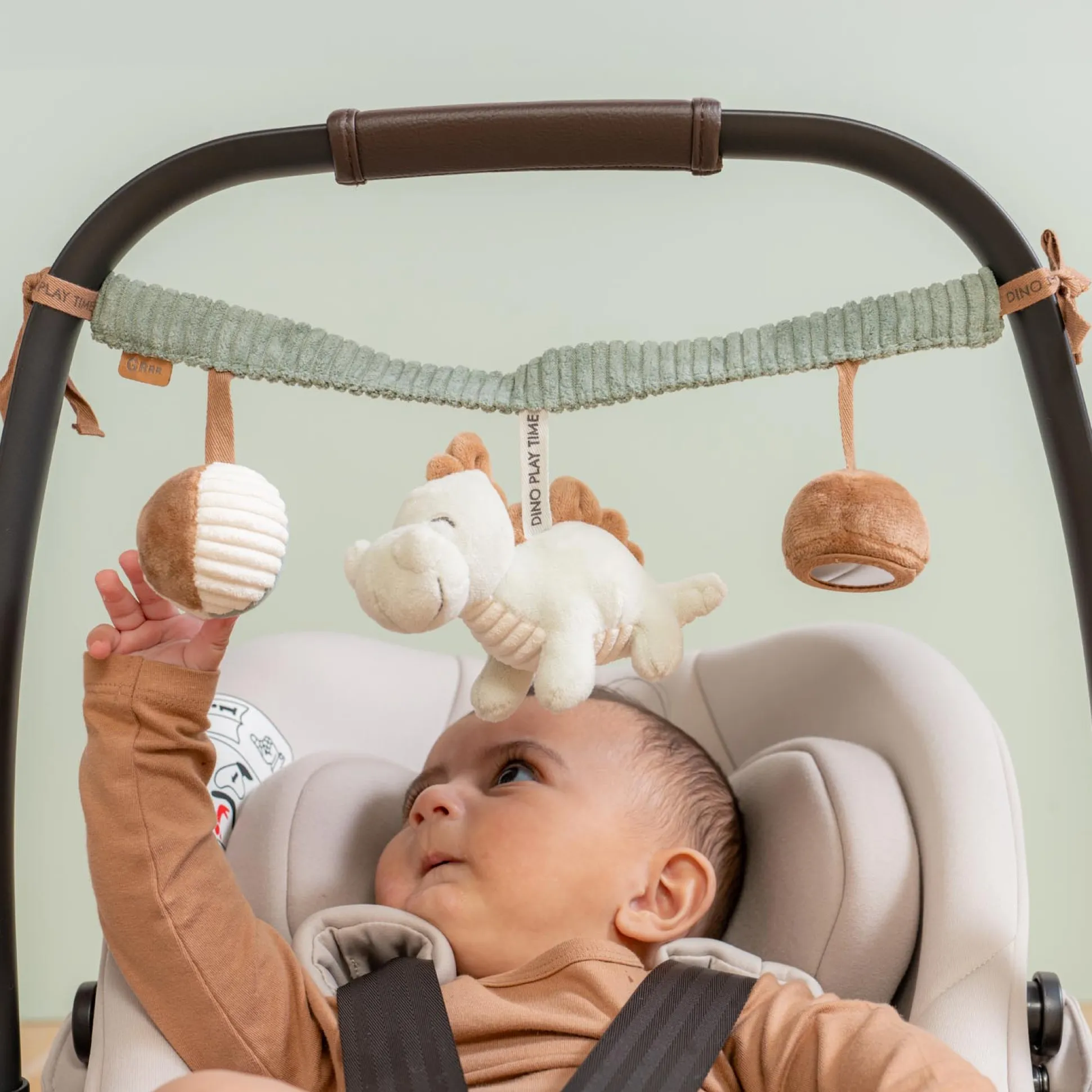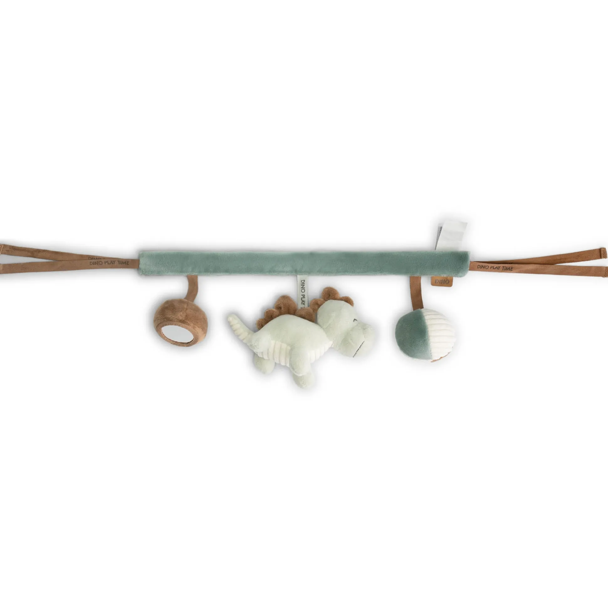 Deze Prénatal wagenspanner uit het Dino thema is eenvoudig te bevestigen op iedere kinderwagen of autostoel, en zorgt voor veel speelplezier en voldoende afleiding tijdens de wandeling of autorit. Aan de wagenspanner hangen twee dino’s en 1 balletje. Genoeg om te ontdekken en mee te spelen voor jouw kleintje. Ontdek ook de andere artikelen uit het Dino thema.