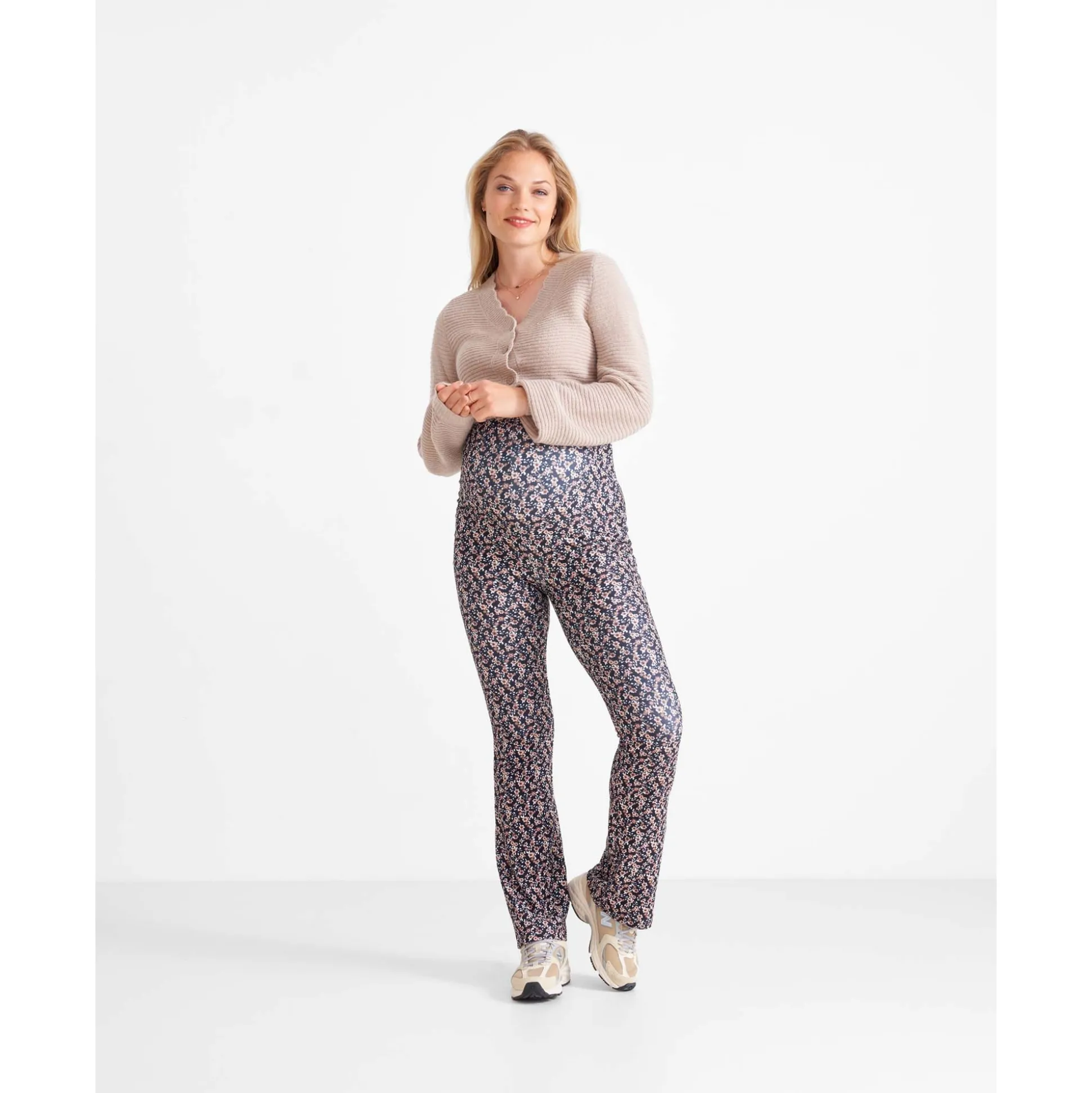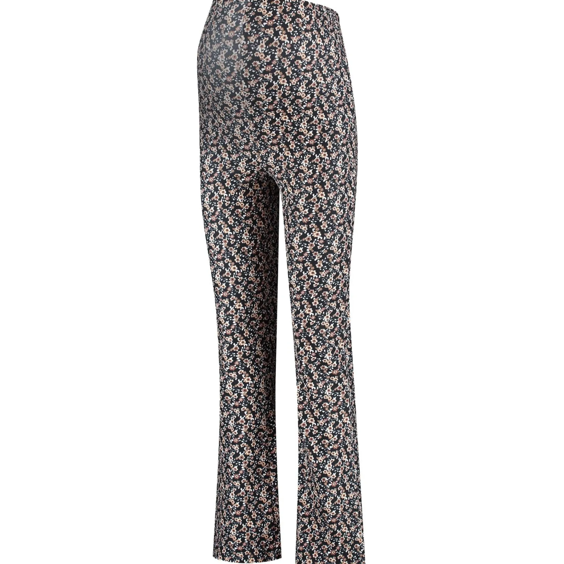 Prénatal zwangerschapsbroek. Deze broek is gemaakt van een fijne ribkwaliteit met een bloemenprint. De broek is voorzien van een elastische tailleband die over de buik heen komt. De broek loopt wijder uit vanaf de knie. Combineer deze flair met één van de zwangerschapsshirts van Prénatal. Verkrijgbaar in de maten S t/m XXL. Samenstelling: 96% polyester en 4% elastaan. Wassen op 30 graden met gelijke kleuren.