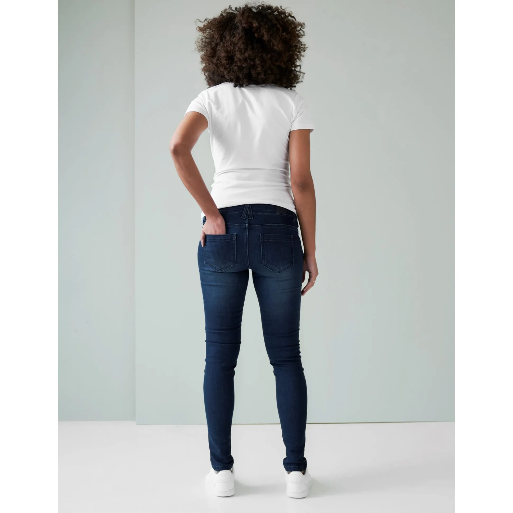Prénatal zwangerschapsjeans. Deze donkerblauwe jeans heeft een skinny pasvorm en heeft een subtiele wassing. De jeans beschikt over een tricot buikband die makkelijk meerekt tijdens de zwangerschap. Daarnaast heeft de jeans een verstelbare tailleband en echte zakken. Leuk te combineren met de zwangerschapstops bij Prénatal. Verkrijgbaar in de maten 27 t/m 33. Samenstelling: 66% katoen, 32% Repreve polyester en 2% elastaan. Wassen op 30 graden.