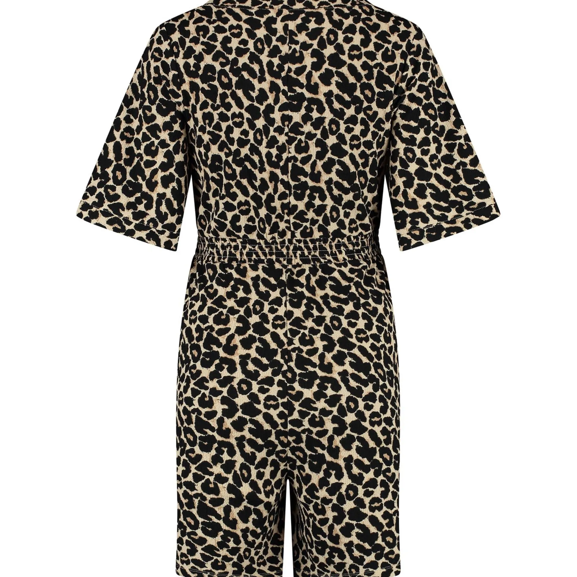 Prénatal zwangerschapsjumpsuit korte mouwen panterprint bruin