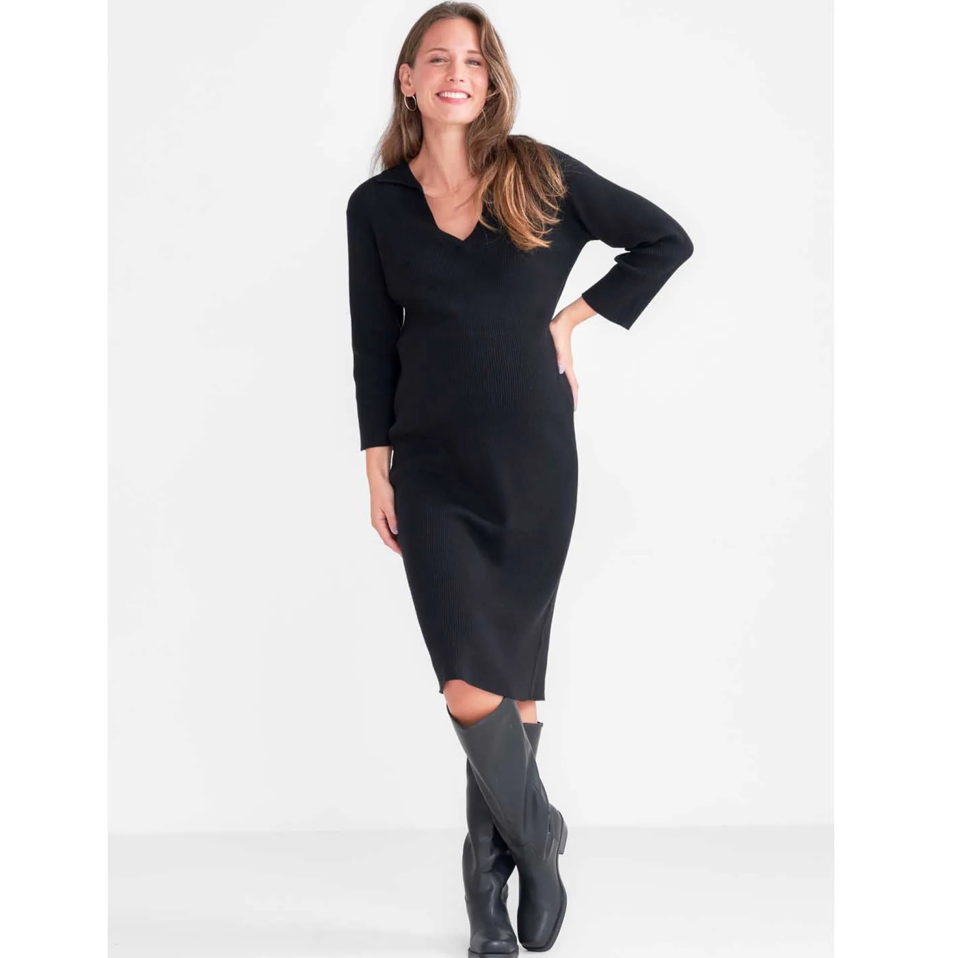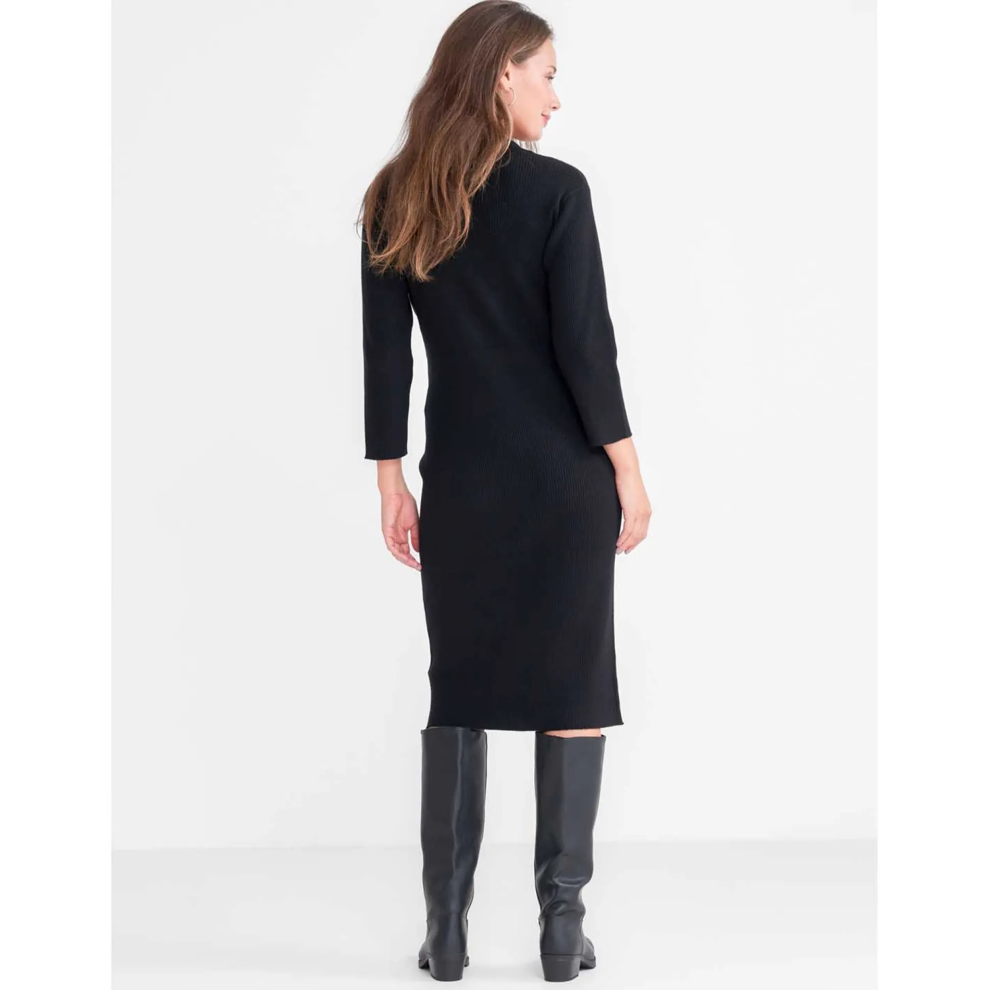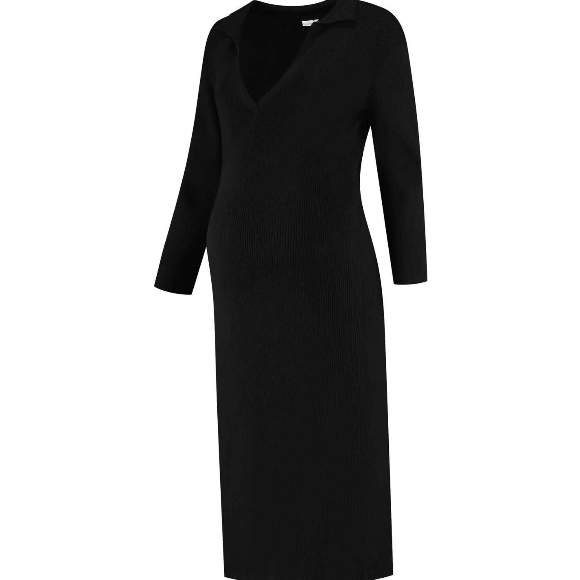 Prénatal zwangerschapsjurk driekwart mouwen effen zwart