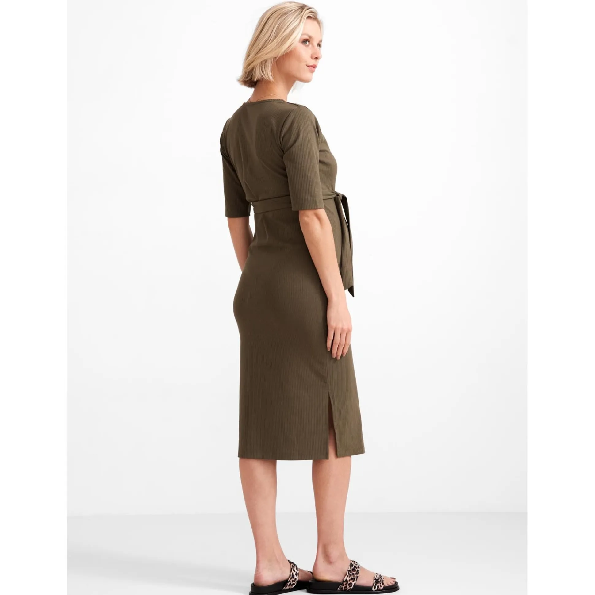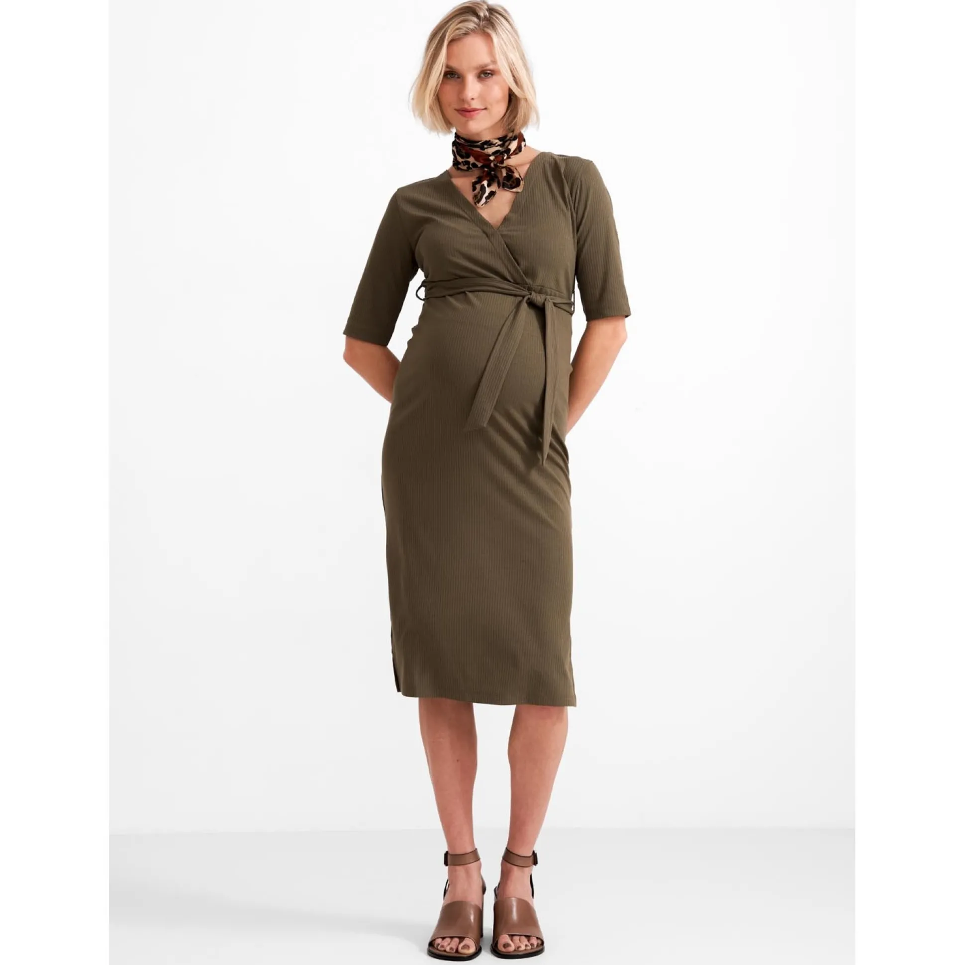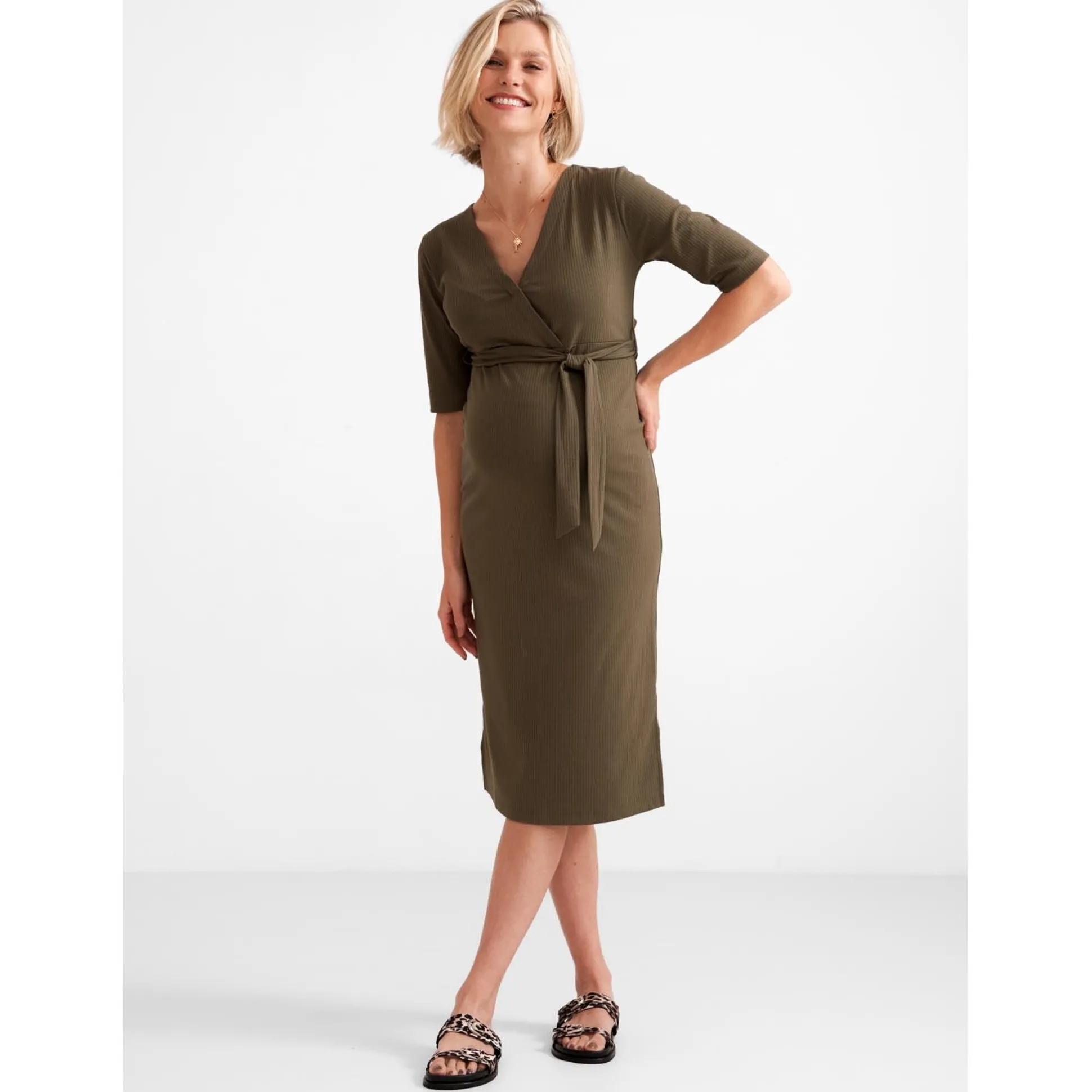 Prénatal zwangerschapsjurk. Deze jurk is gemaakt van gerecycled polyester in een ribkwaliteit. De jurk is voorzien van korte mouwen, een V-nek met overslag waardoor je makkelijk je kindje kan voeden. De taille is afgewerkt met een leuke strikcentuur. Combineer de zwangerschapsjurk met één van de zwangerschapspanty’s bij Prénatal. Verkrijgbaar in de maten XS t/m XXL. Samenstelling: 63% gerecycled polyester, 32% viscose en 5% elastaan. Wassen op 30 graden met gelijke kleuren. Dit product is getest op schadelijke chemicaliën en gecertificeerd volgens standaard 100 door OEKO-TEX® 2017OK0029 AITEX.