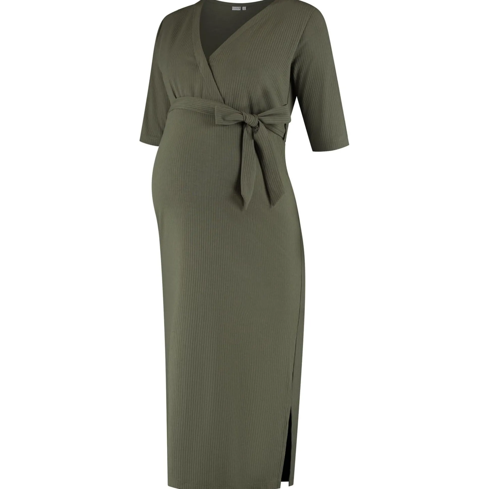 Prénatal zwangerschapsjurk korte mouwen effen groen