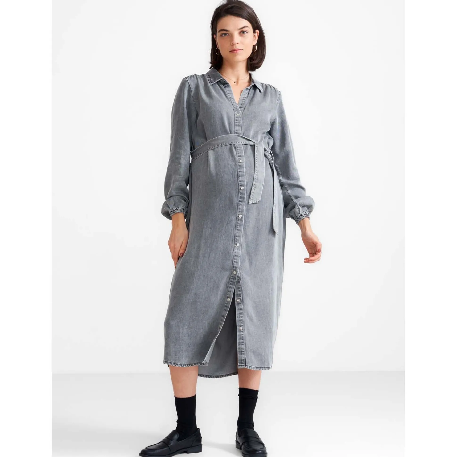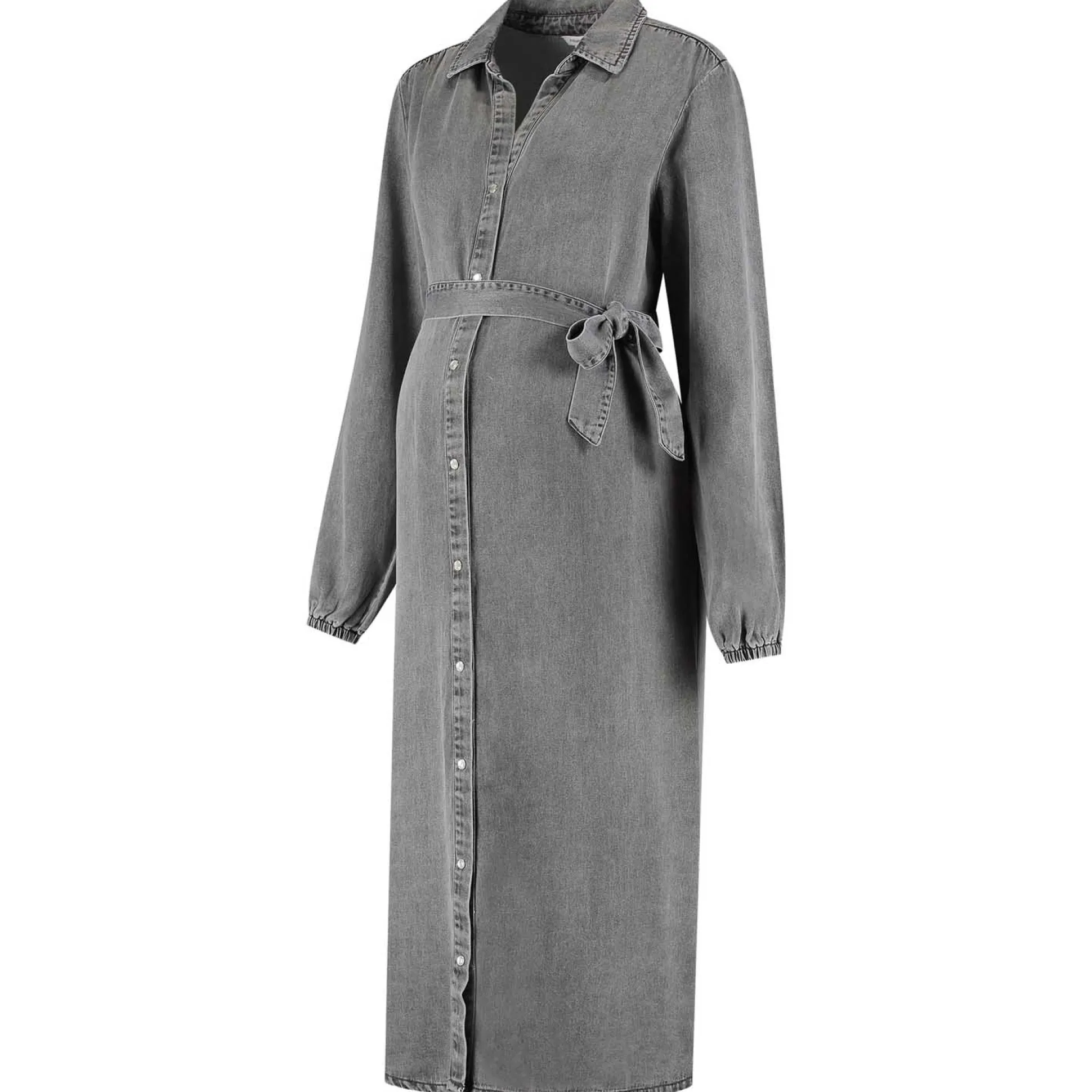Prénatal zwangerschapsjurk. Deze denimlook jurk heeft een lichte wassing en is grotendeels van soepelvallend lyocell gemaakt. De jurk heeft een doorlopende knoopsluiting wat voeden van je kleintje makkelijker maakt. De taille is afgewerkt met een strikceintuur om je zwangere buik mooi te accentueren. Combineer de jurk met blote benen of een panty uit de collectie van Prénatal. Verkrijgbaar in de maten XS t/m XXL. Samenstelling: 70% lyocell en 30% katoen. Wassen op 30 graden met gelijke kleuren.
