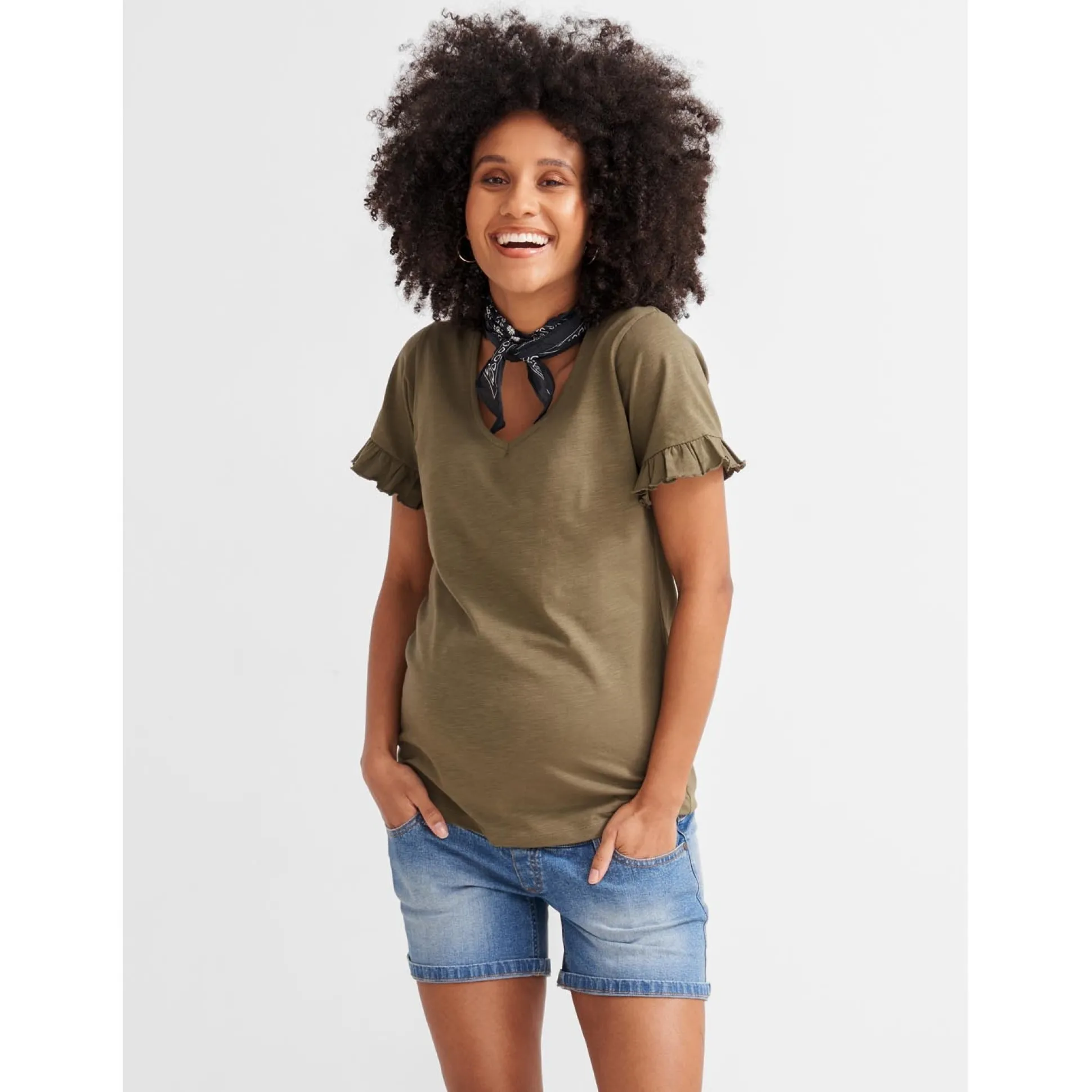 Prénatal zwangerschapsshort. Deze korte denim broek is verkrijgbaar in een middenblauwe kleur met een mooie wassing. De short is voorzien van een buikband die fijn meerekt tijdens de zwangerschap. Daarnaast heeft de korte spijkerbroek een verstelbare tailleband en echte zakken. Leuk te combineren met een zwangerschapsshirt van Prénatal. Verkrijgbaar in de maten S t/m XXL. Samenstelling: 99% katoen en 1% elastaan. Wassen op 30 graden.